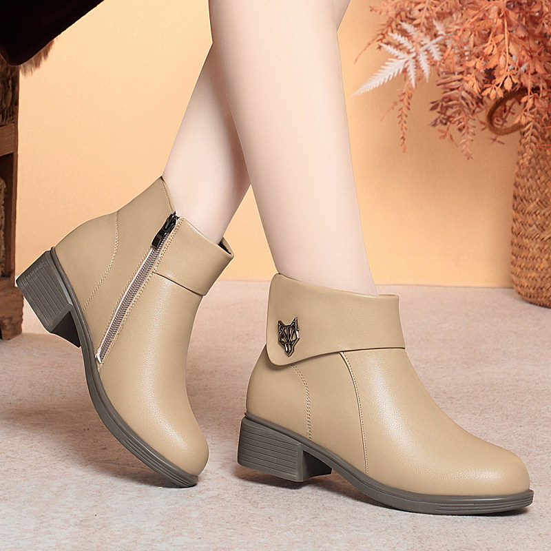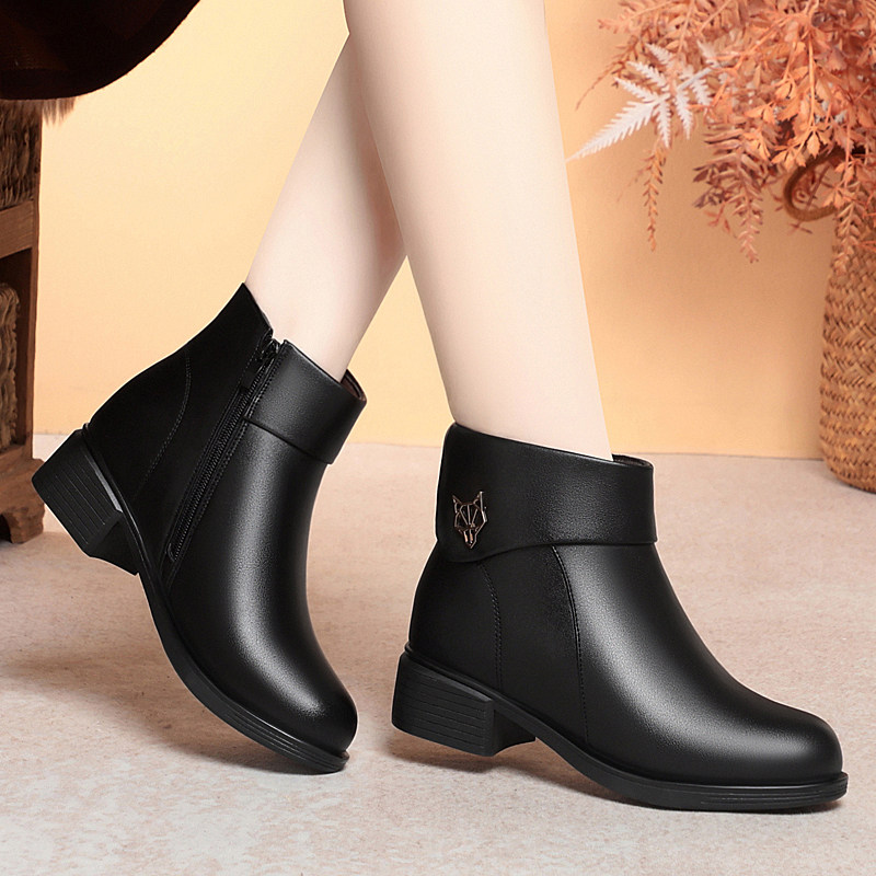冬季新款真皮女棉鞋休闲平跟加绒短靴软底马丁靴女鞋羊毛棉皮鞋子