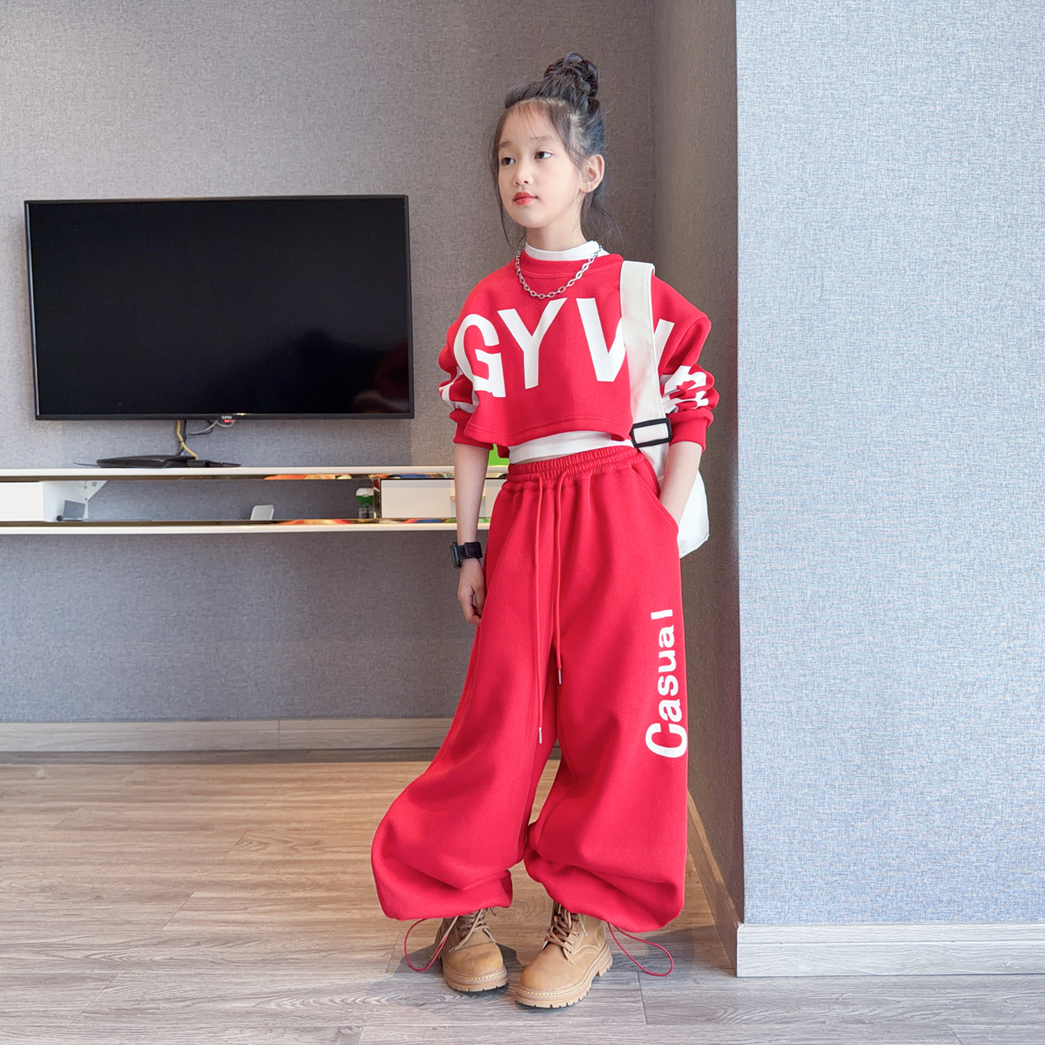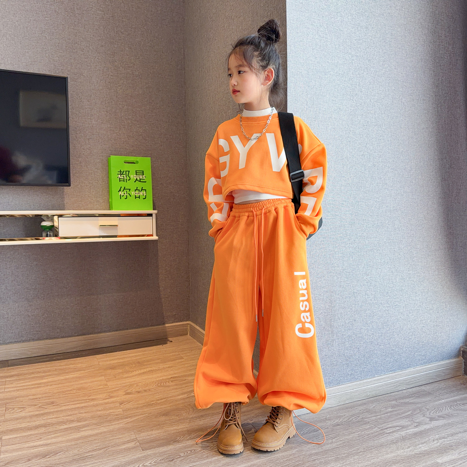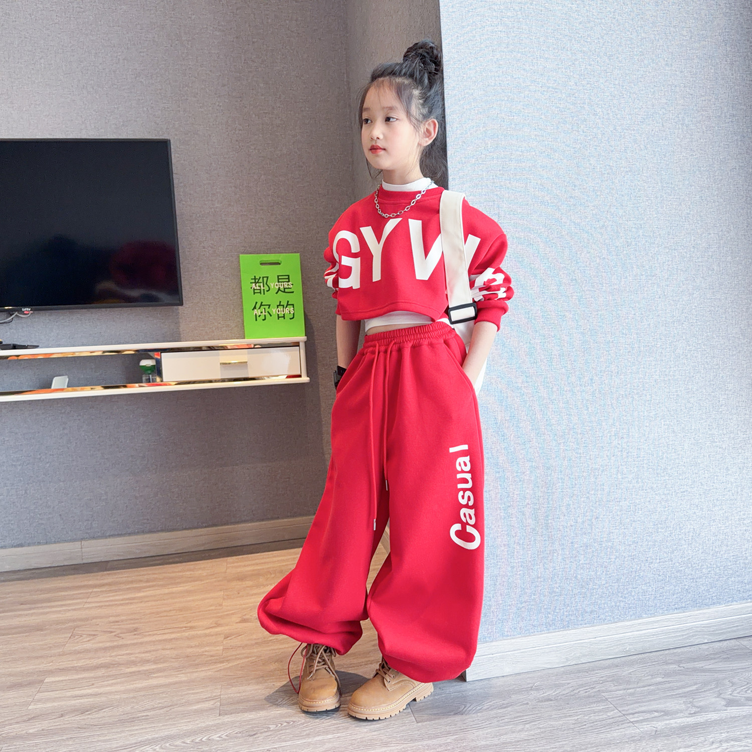女童套装2026春装新款女孩时尚短款上衣运动阔腿裤春季街舞两件套