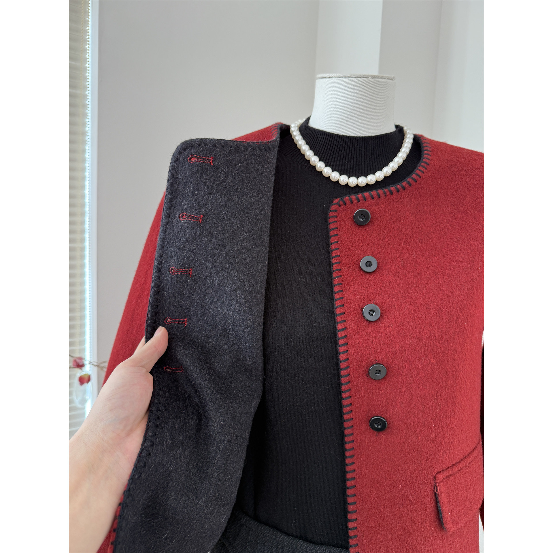 妈妈秋冬装新款双面呢羊毛大衣短款小个子外套中老年女装高端衣服