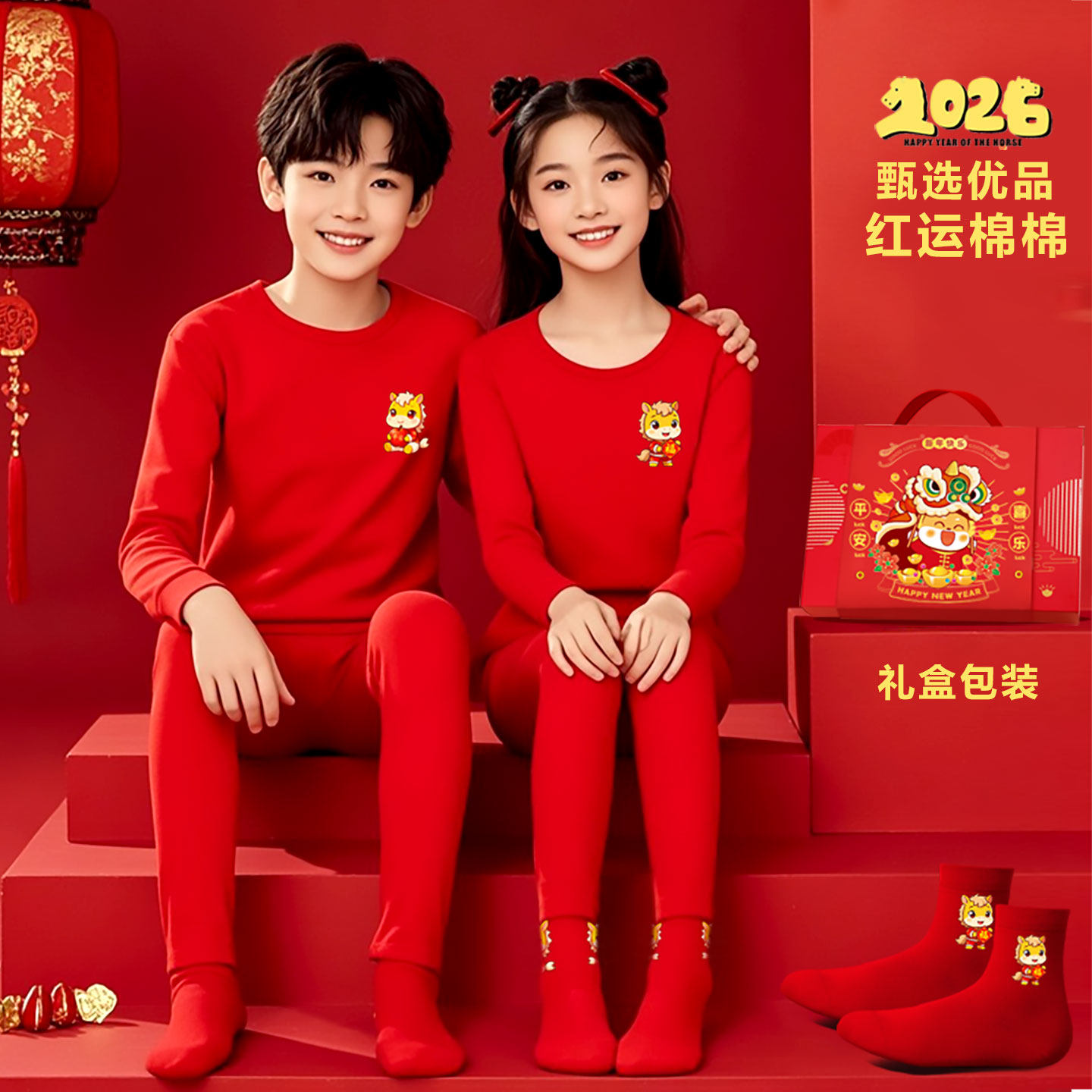 311线报网描述:儿童本命年红内衣套装新年红色背心内裤袜子