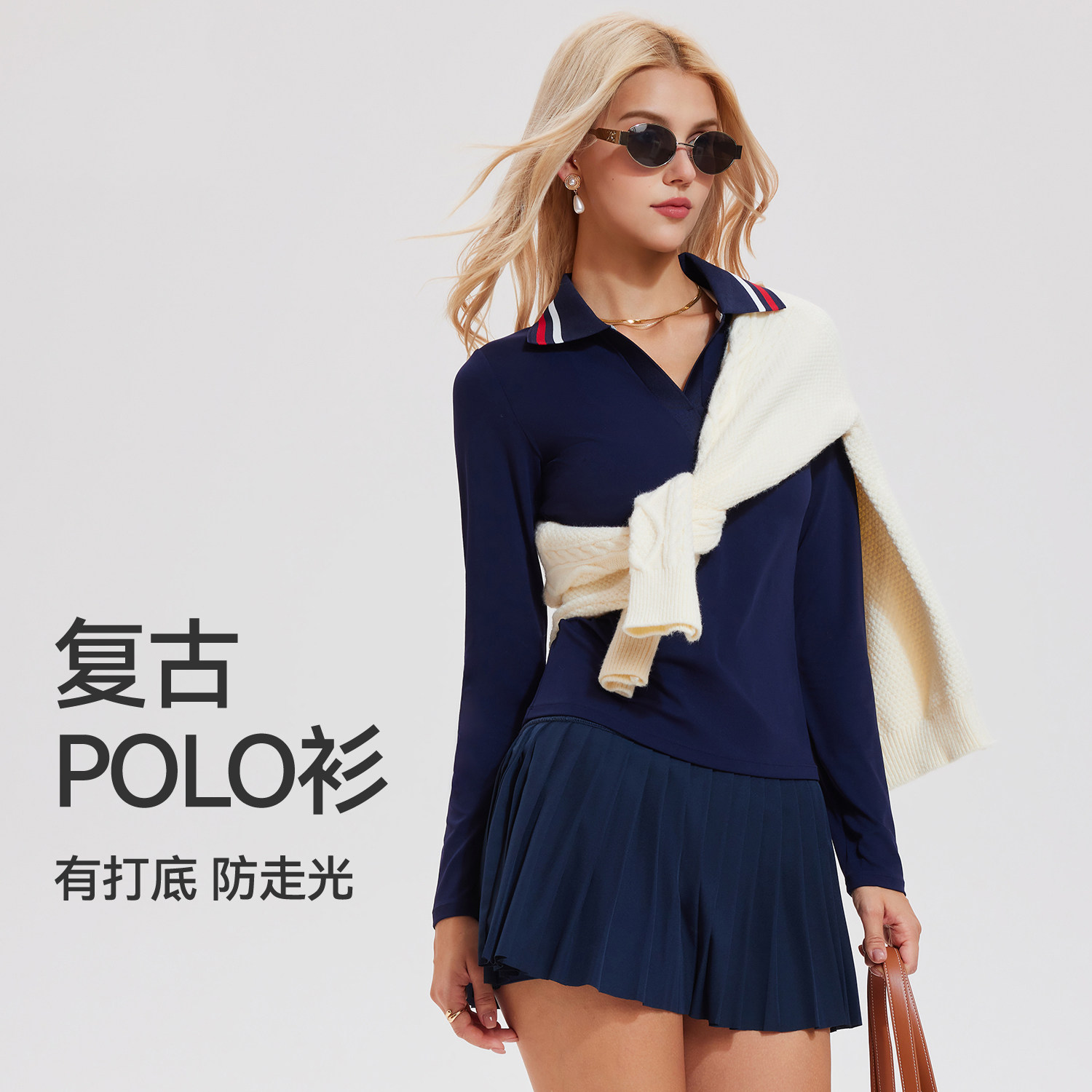网球套装女2026新款Polo领长袖羽毛球v领户外跑步训练t健身服上衣