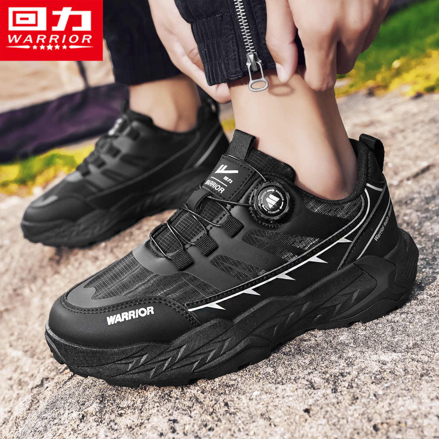 回力旋钮扣男鞋冬季运动增高黑色户外防滑登山休闲工作劳保老爹鞋