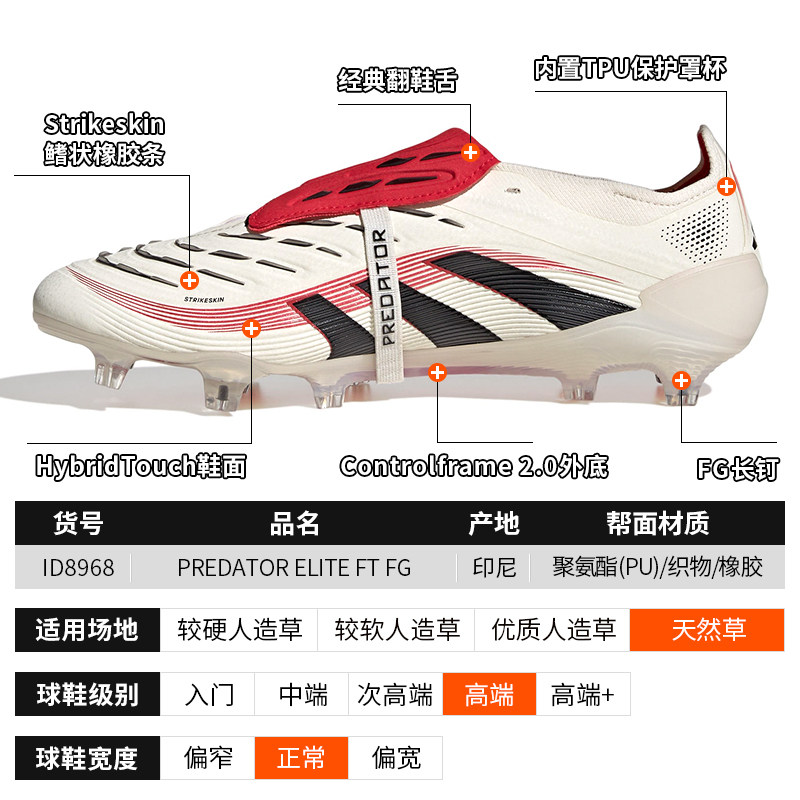 酷锐足球阿迪达斯猎鹰25 PREDATOR高端FG长钉翻鞋舌足球鞋ID8968