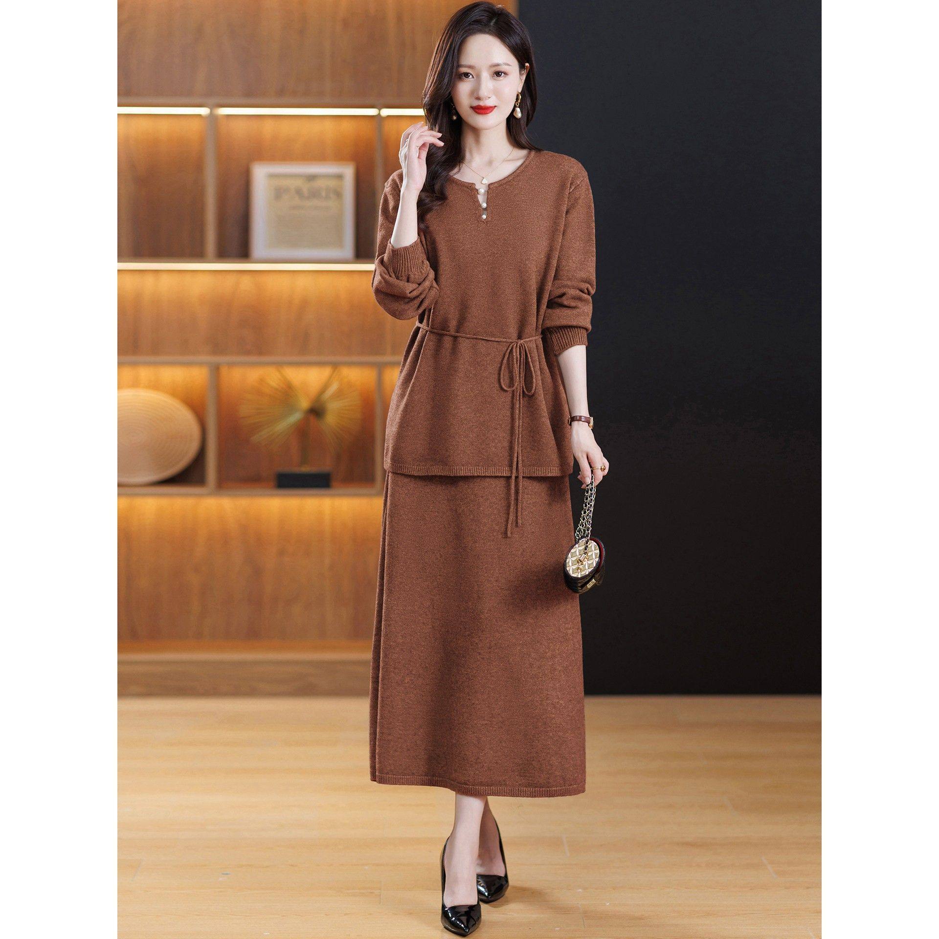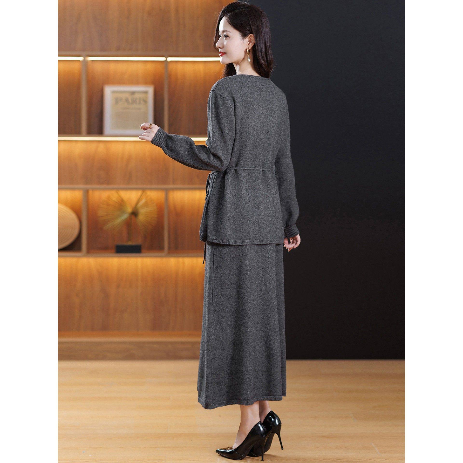 轻奢高级感秋冬款2025新款套装裙女时尚气质羊毛针织连衣裙两件套