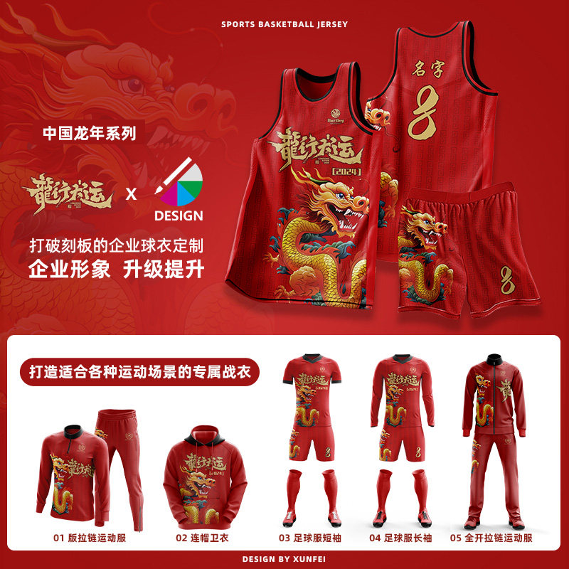 篮球服套装男春节龙年红色全身定制透气球衣比赛训练运动队服团购