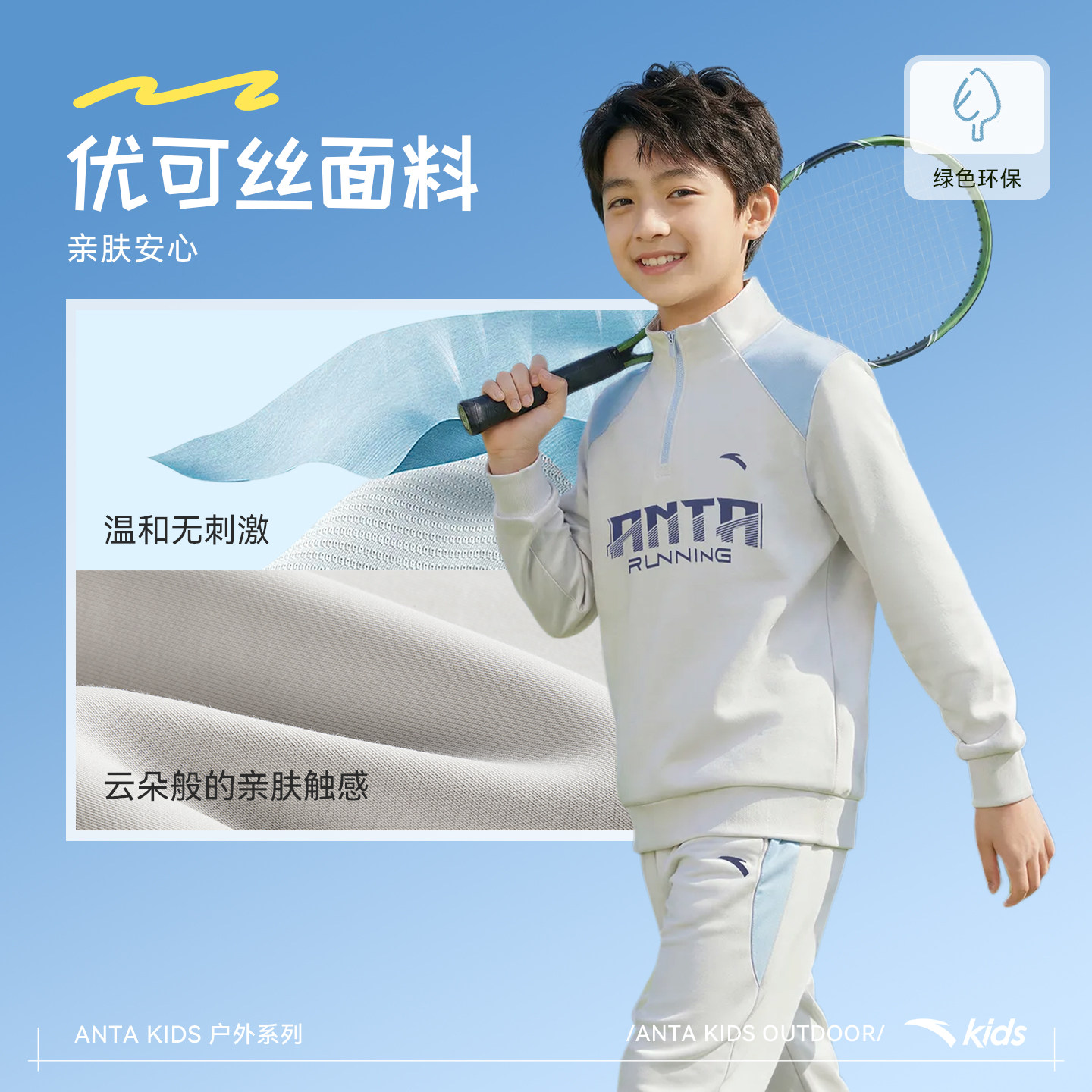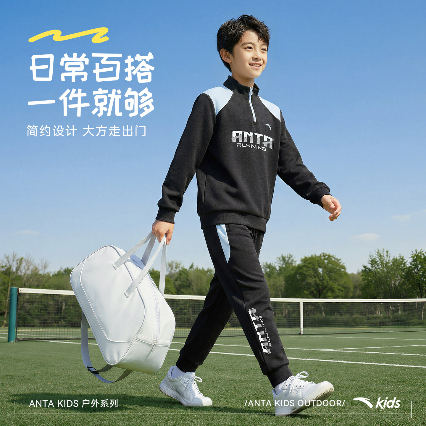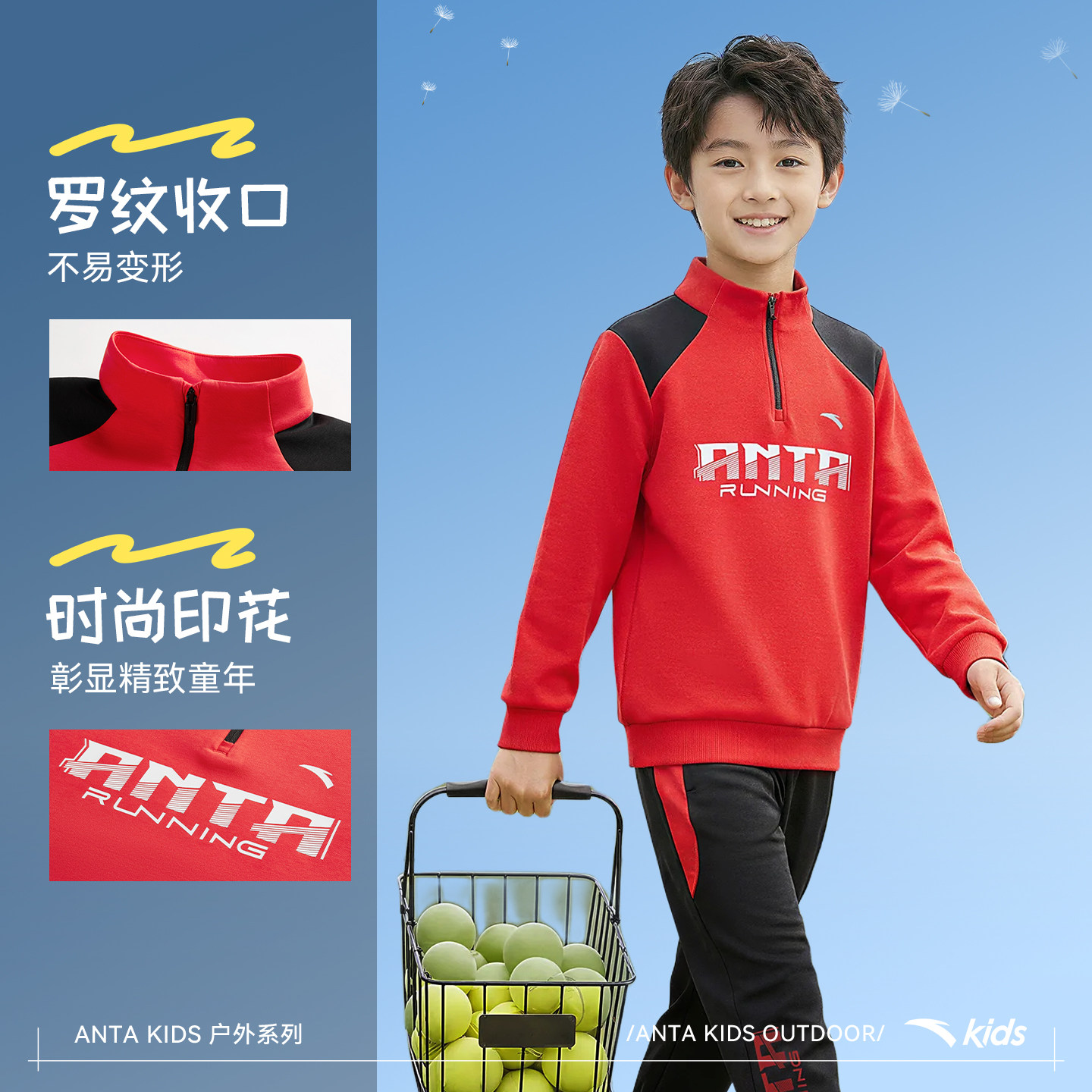安踏儿童男大童针织运动套2026年春新款舒适亲肤中大童卫衣卫裤潮
