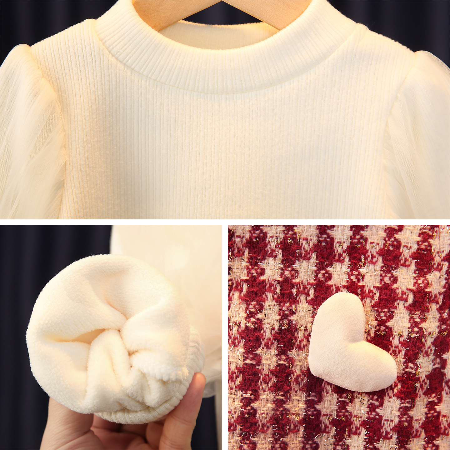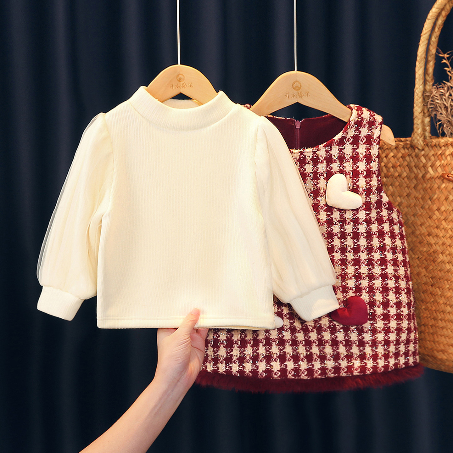 311线报网描述:女宝宝连衣裙套装冬季加绒加厚毛呢赠送帽子