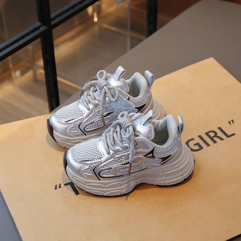 女童银色老爹鞋2025新款秋冬爆款儿童鞋子时尚厚底休闲加绒运动鞋