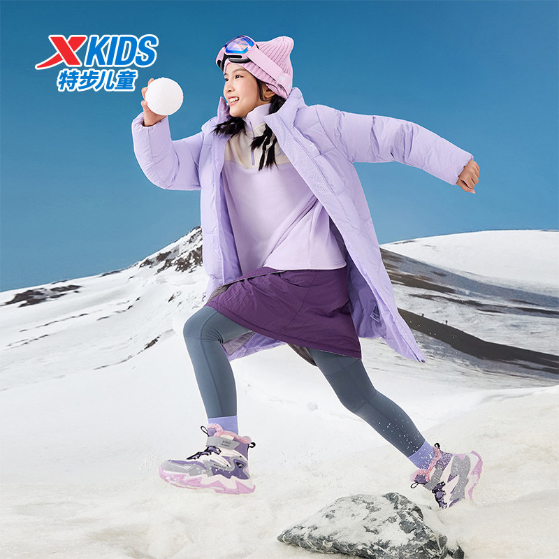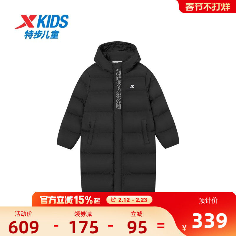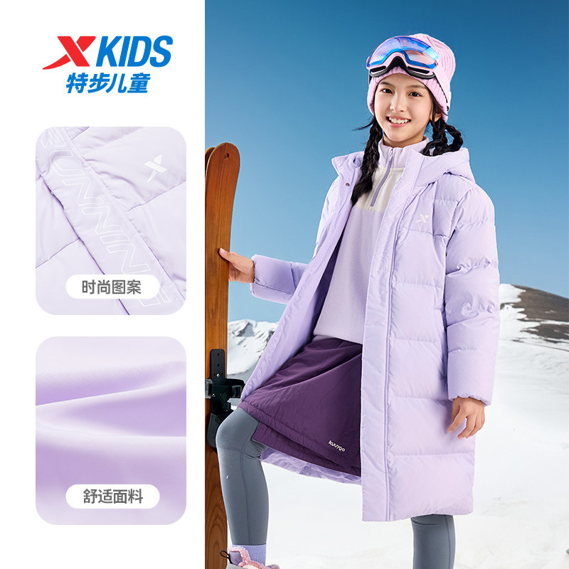 特步童装女童中长款羽绒服儿童保暖外套2026秋冬新款大童防寒衣服