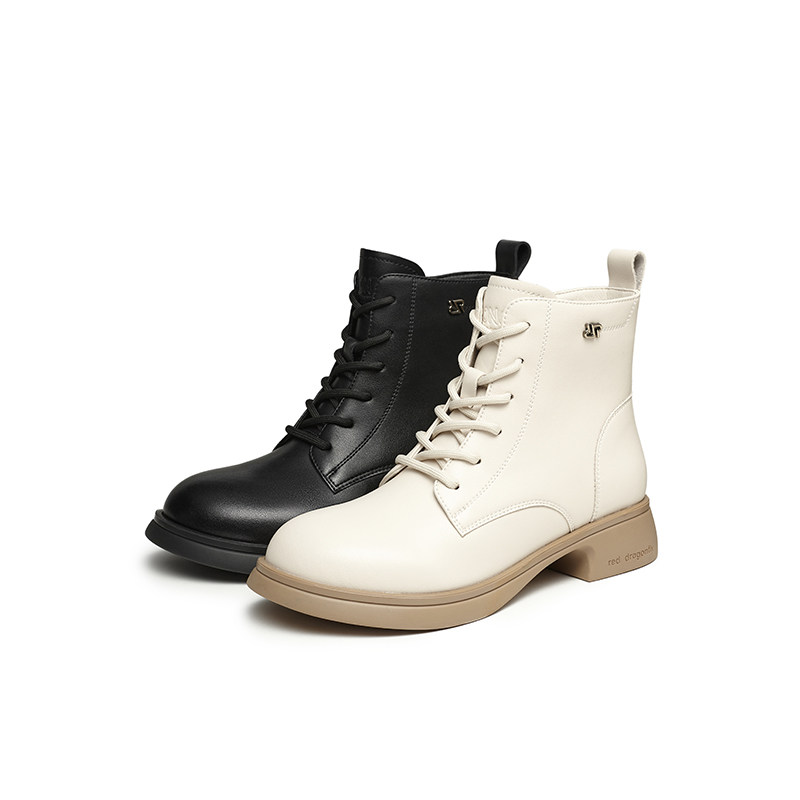 红蜻蜓马丁靴女款冬季新款女鞋厚底粗跟系带短筒靴加绒保暖女棉鞋