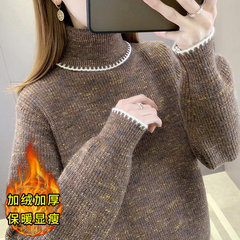 毛衣女款2025新款冬季爆款女士时尚洋气内搭加绒加厚高领打底衫女
