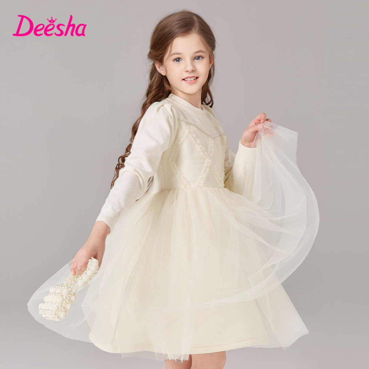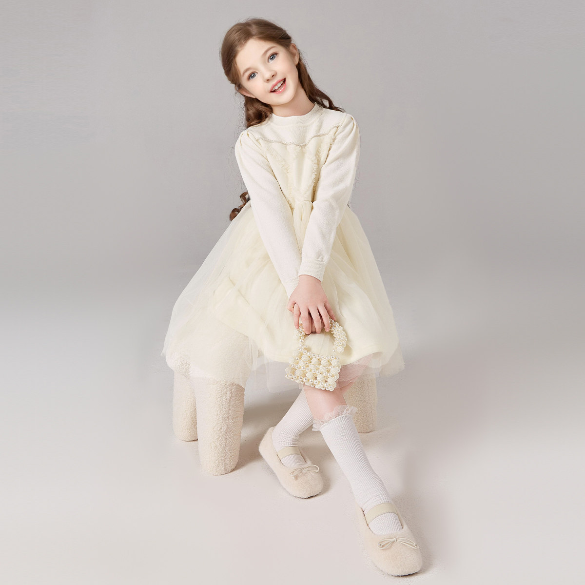 笛莎女童连衣裙2025秋冬装中大童儿童洋气毛衣加厚公主网纱裙子