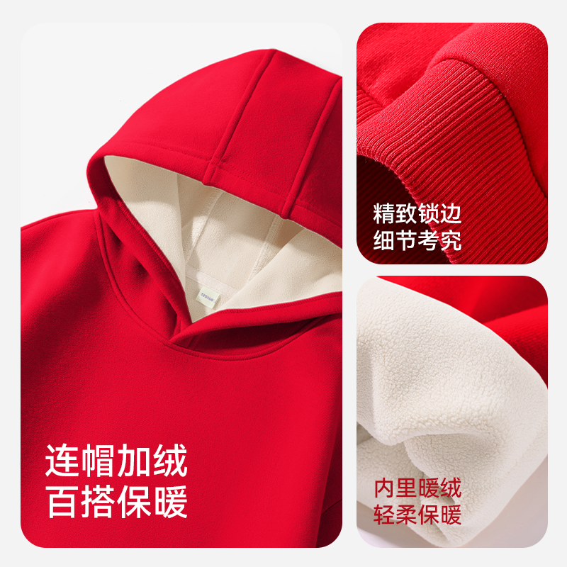 红豆儿童红色卫衣男童马年本命年拜年服加绒加厚上衣女童过年衣服