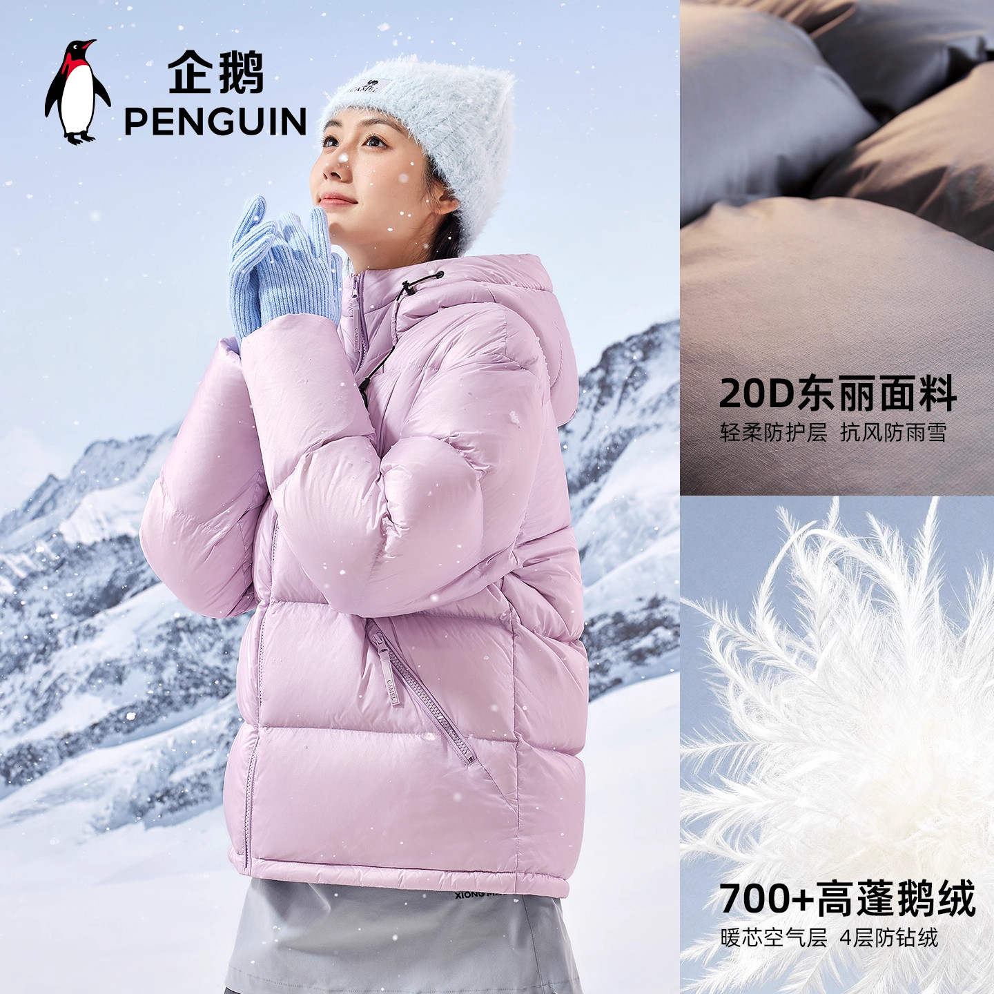 企鹅【奢暖】鹅绒羽绒服女2026冬季情侣加厚保暖短款面包服男