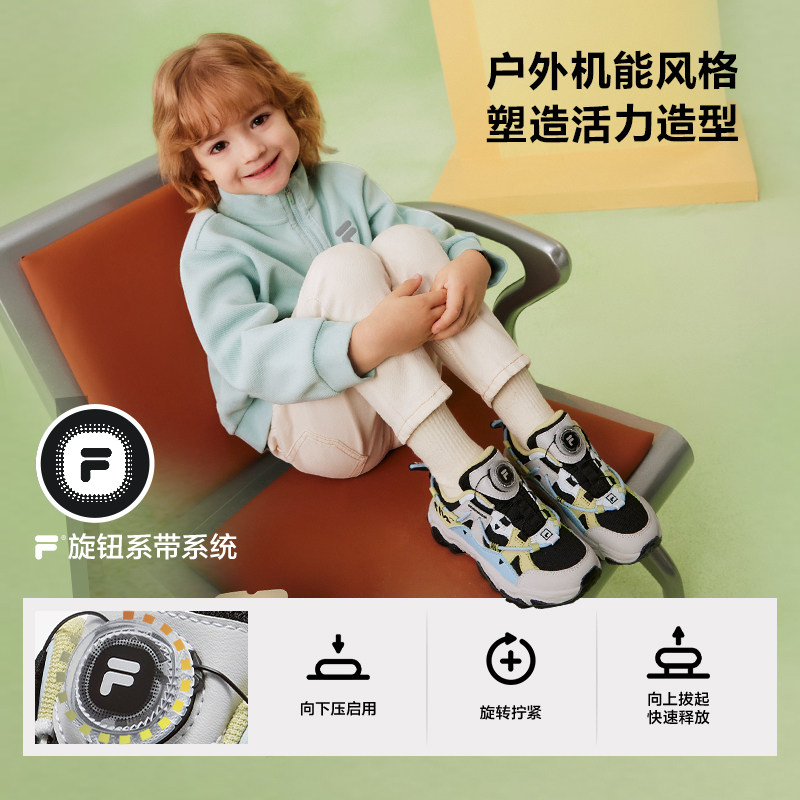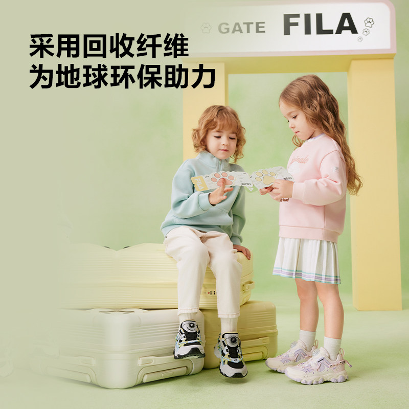 FILA斐乐儿童童鞋跑步鞋2026春季新款男女小童旋钮扣运动鞋子猫爪