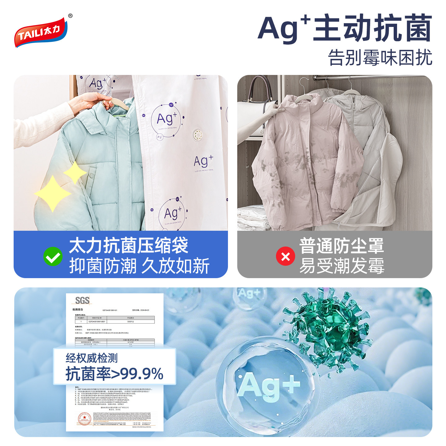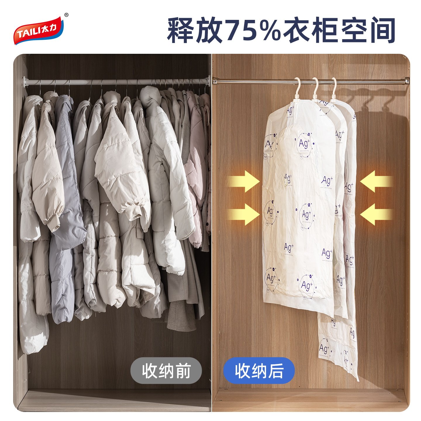 太力羽绒服压缩收纳袋抽真空压缩袋挂式大衣家用透明衣物挂衣罩袋