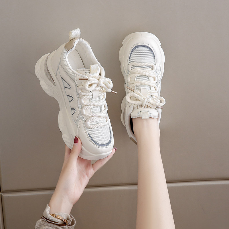 老爹鞋女款2024新款夏季网面厚底踩屎感软底内增高小白鞋运动爆款