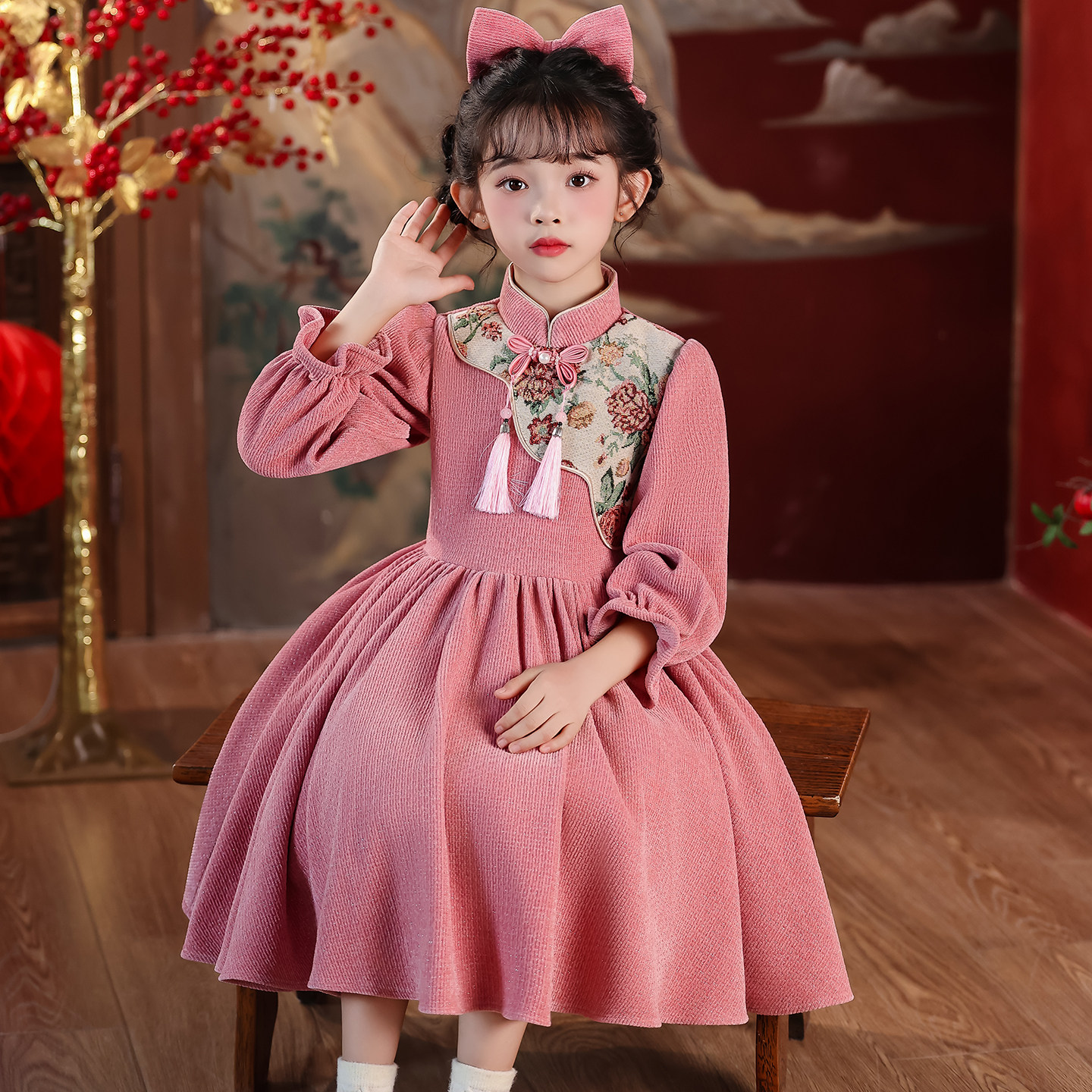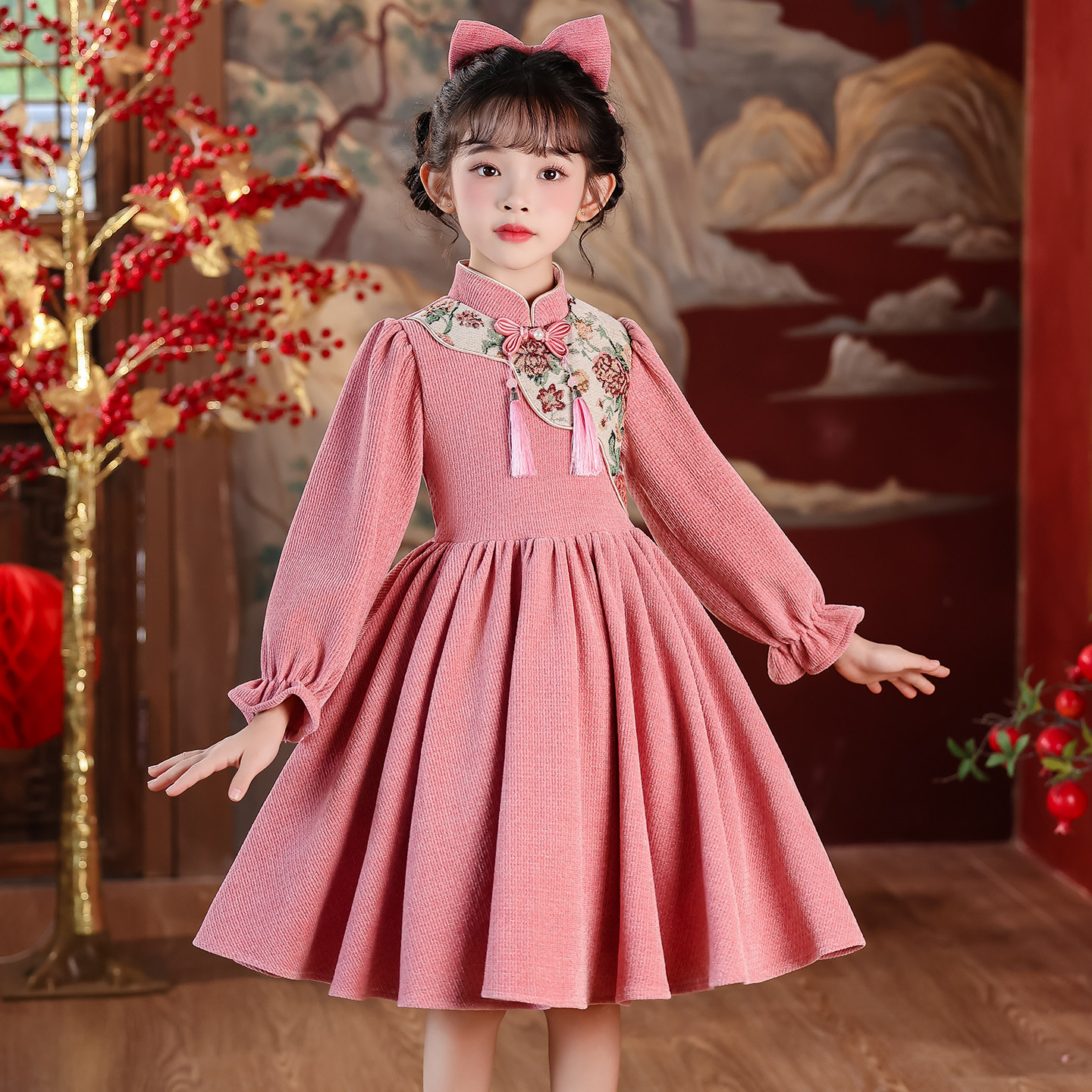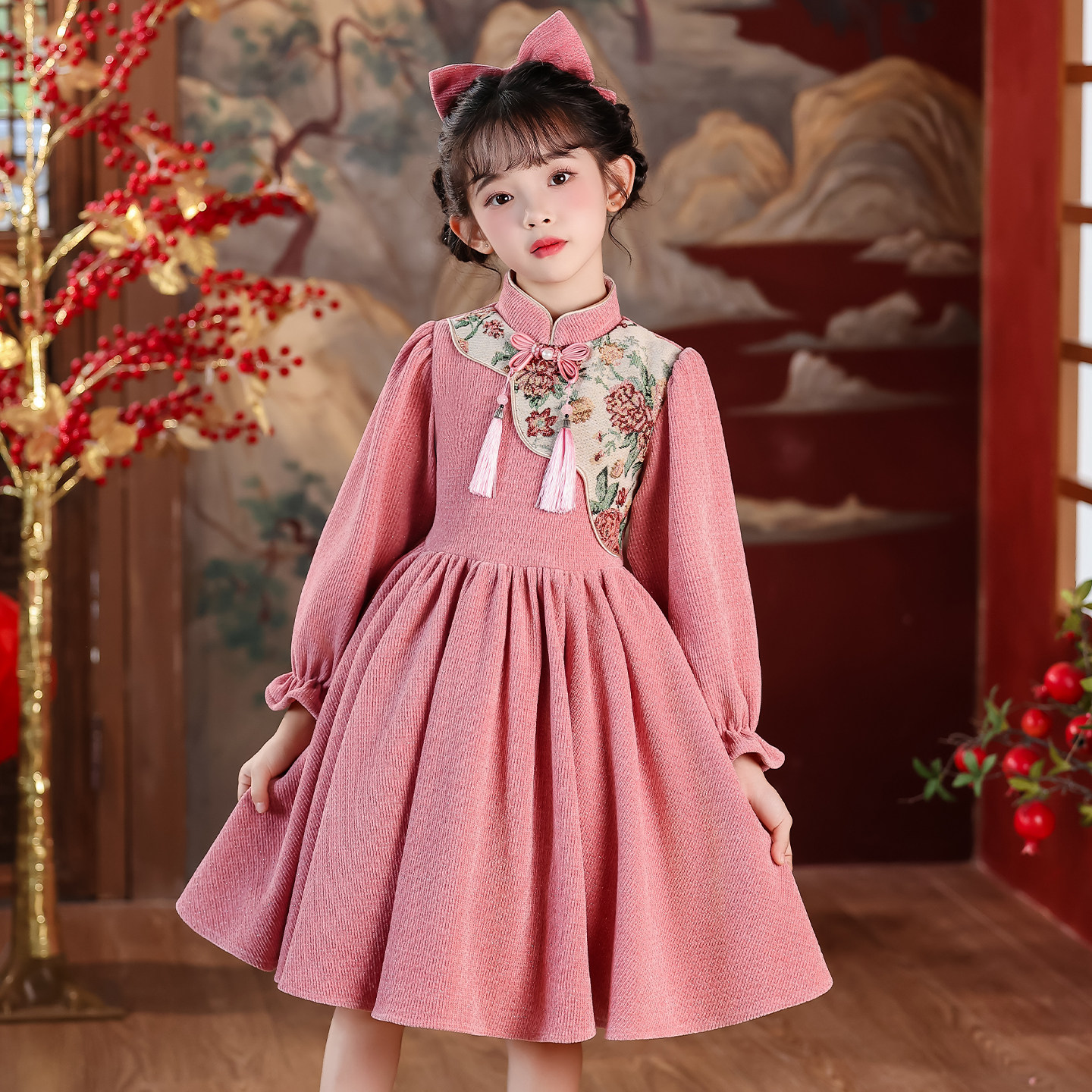 女童连衣裙2025新款女孩秋冬轻奢小众高端裙中国风洋气儿童新年裙