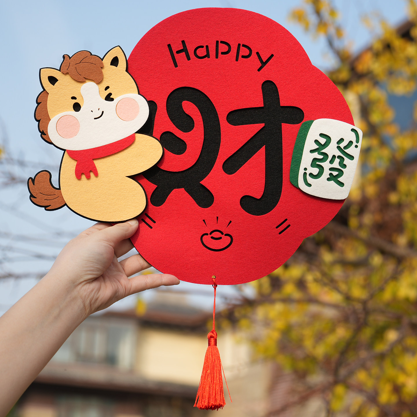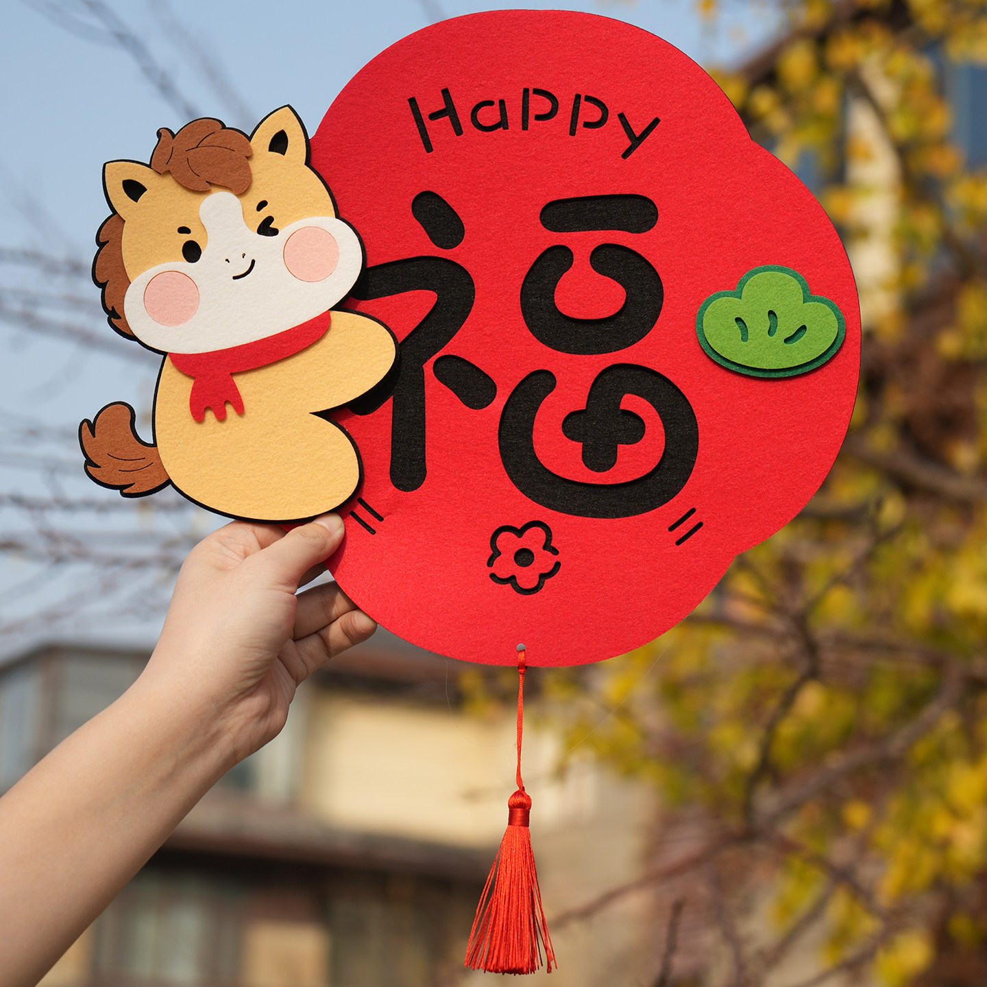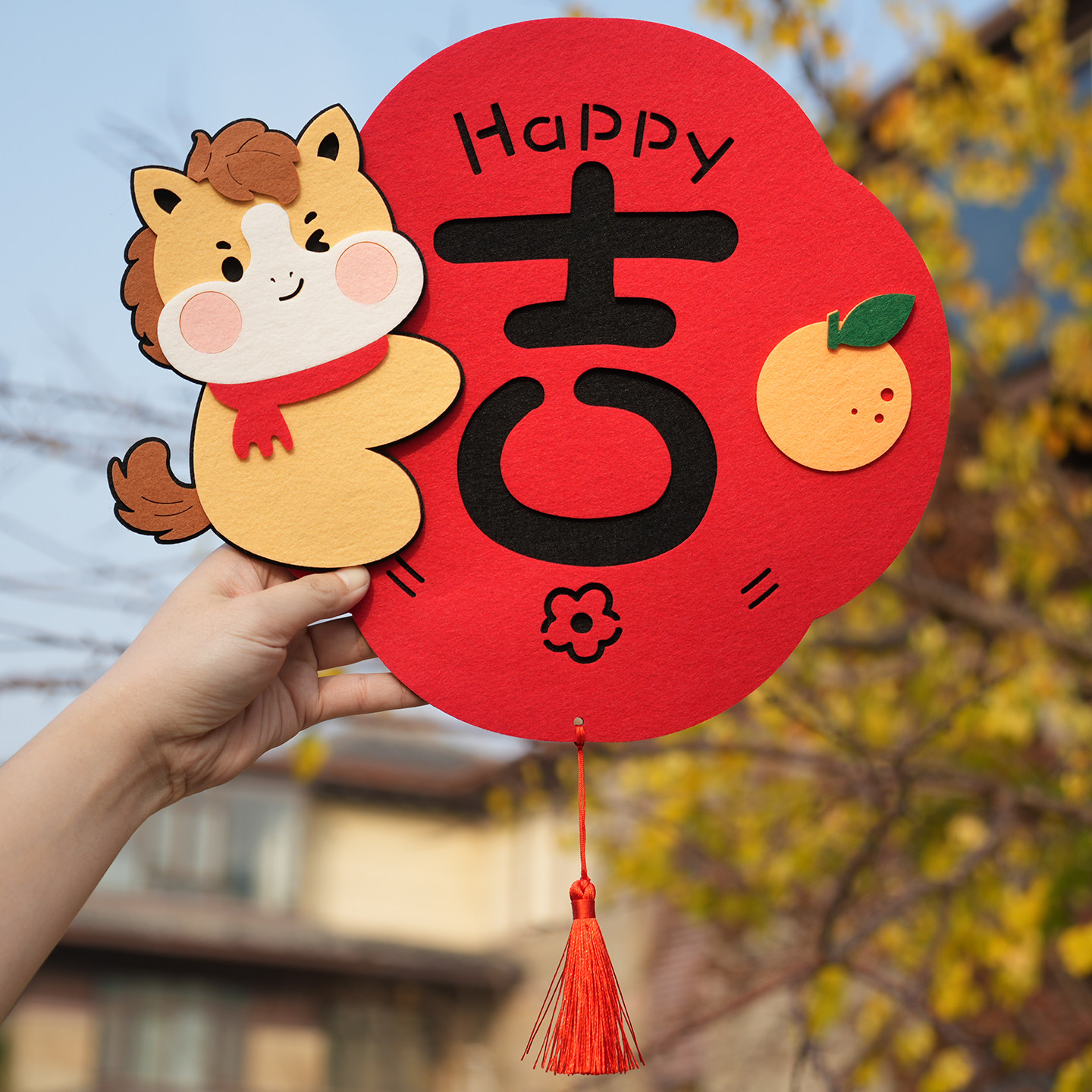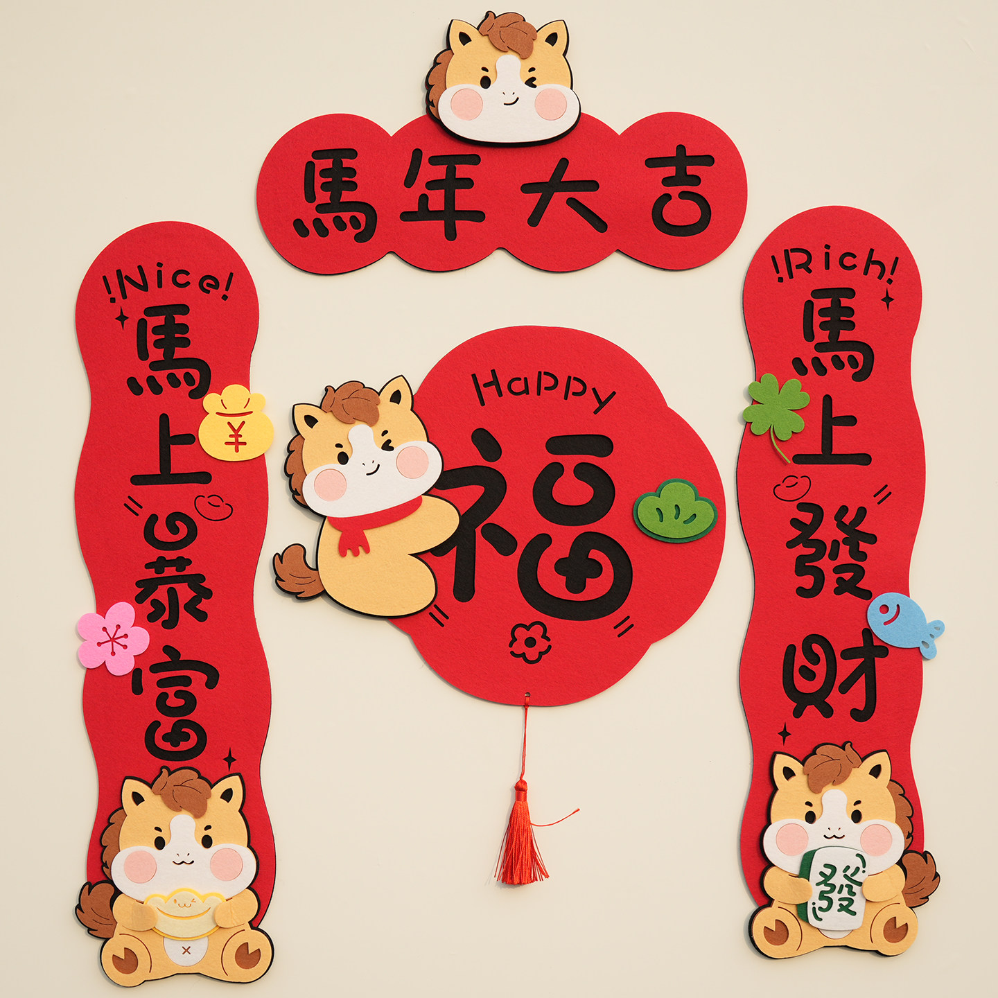 2026马年卡通小马可爱创意对联毛毡春节立体装饰春联福字门贴