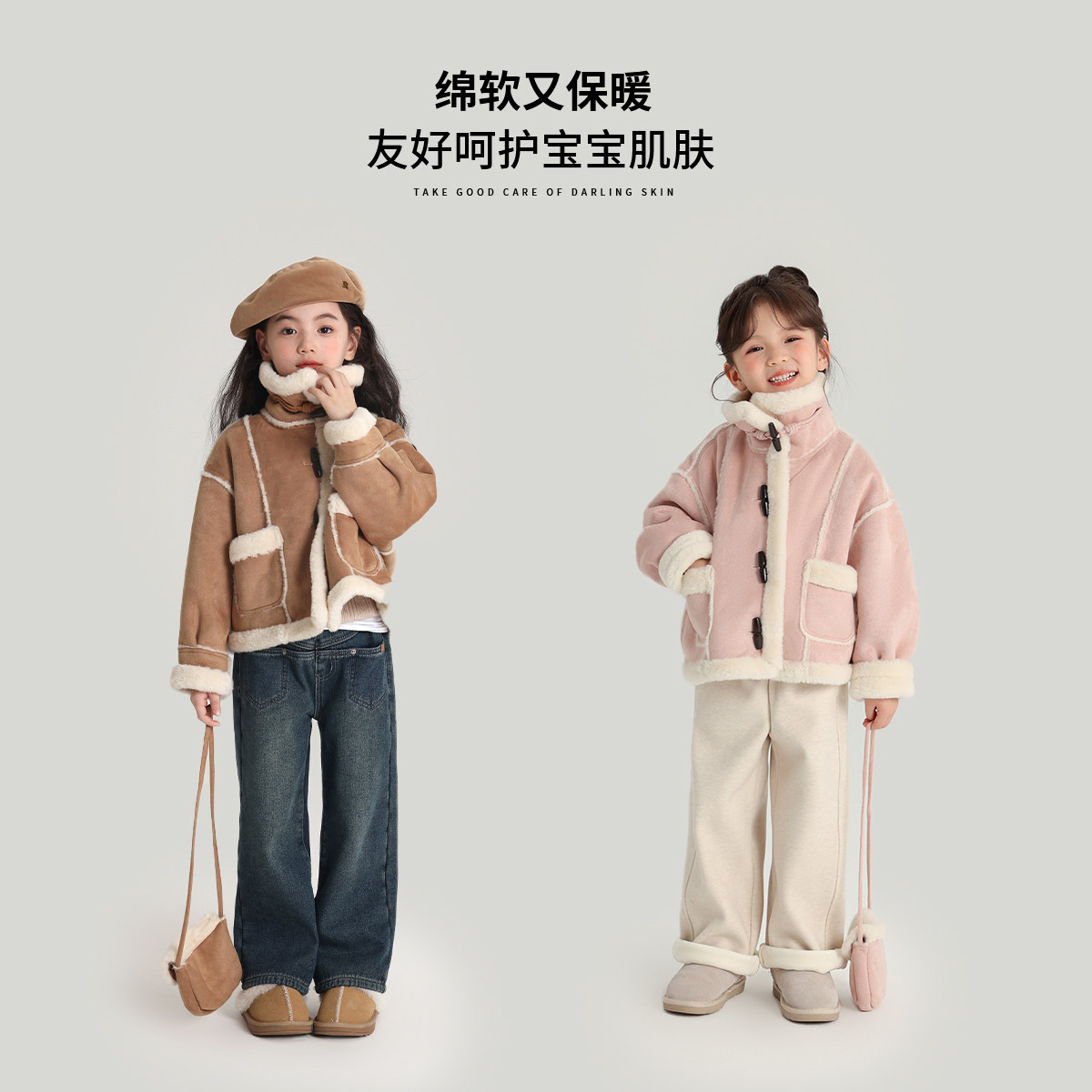 布丁哈鲁童装冬装女童洋气上衣2026冬季新款儿童短款翻领加绒外套