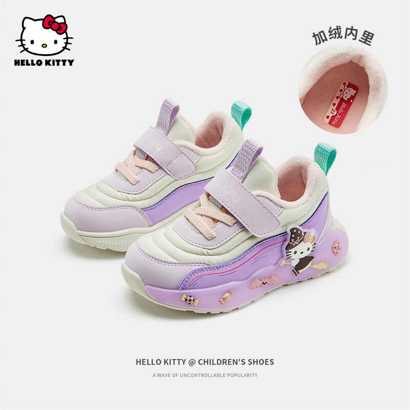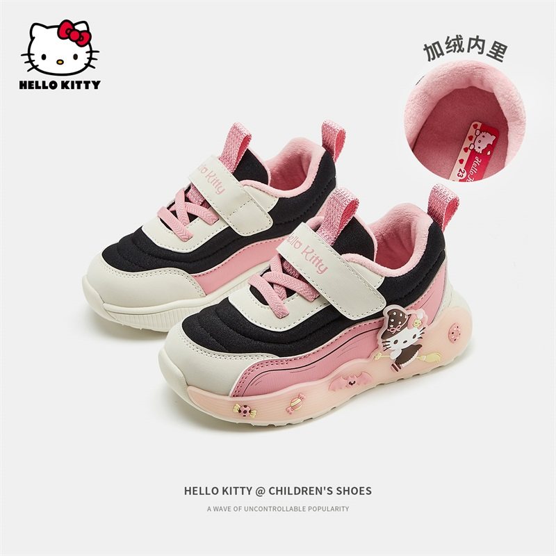 HelloKitty童鞋女童运动鞋冬季中小童跑步鞋加绒保暖女孩二棉鞋子