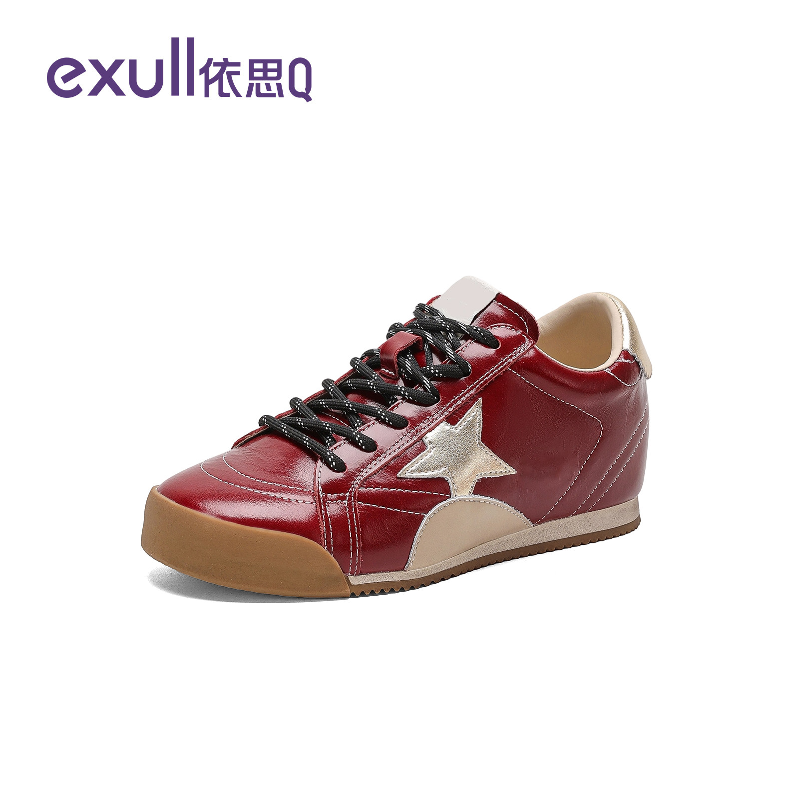依思q红色德训鞋女内增高2026春季新款星星休闲鞋子轻便百搭板鞋