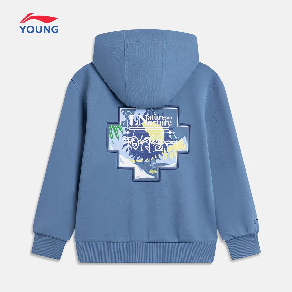 李宁童装春款男童中大童开衫连帽卫衣儿童运动针织外套YWDU039