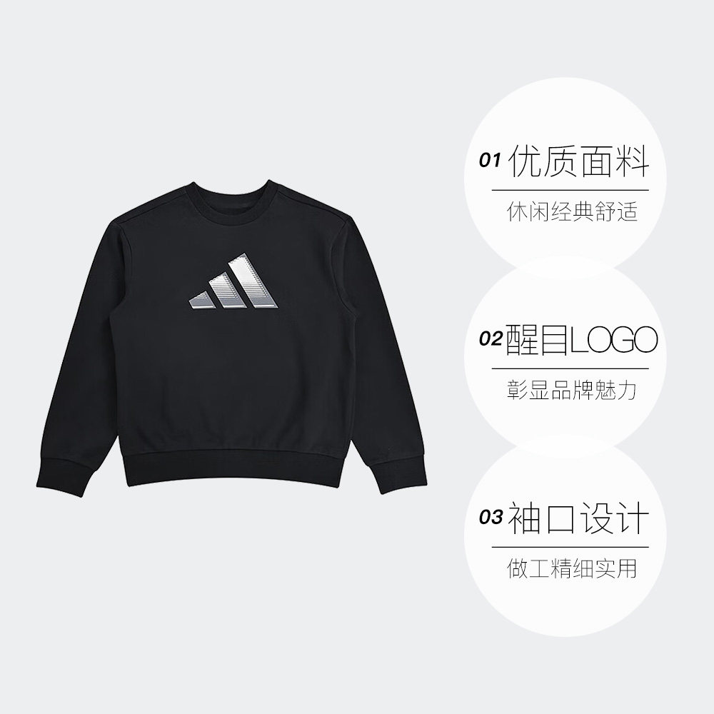 【自营】阿迪达斯儿童卫衣秋新款童装大中童圆领套头运动衫KS0643