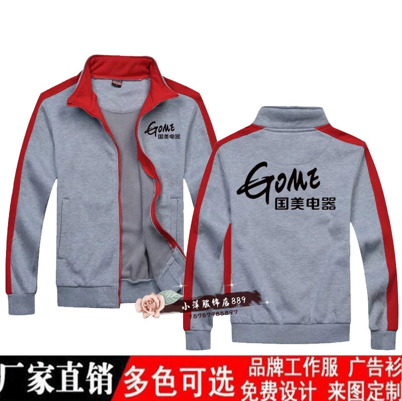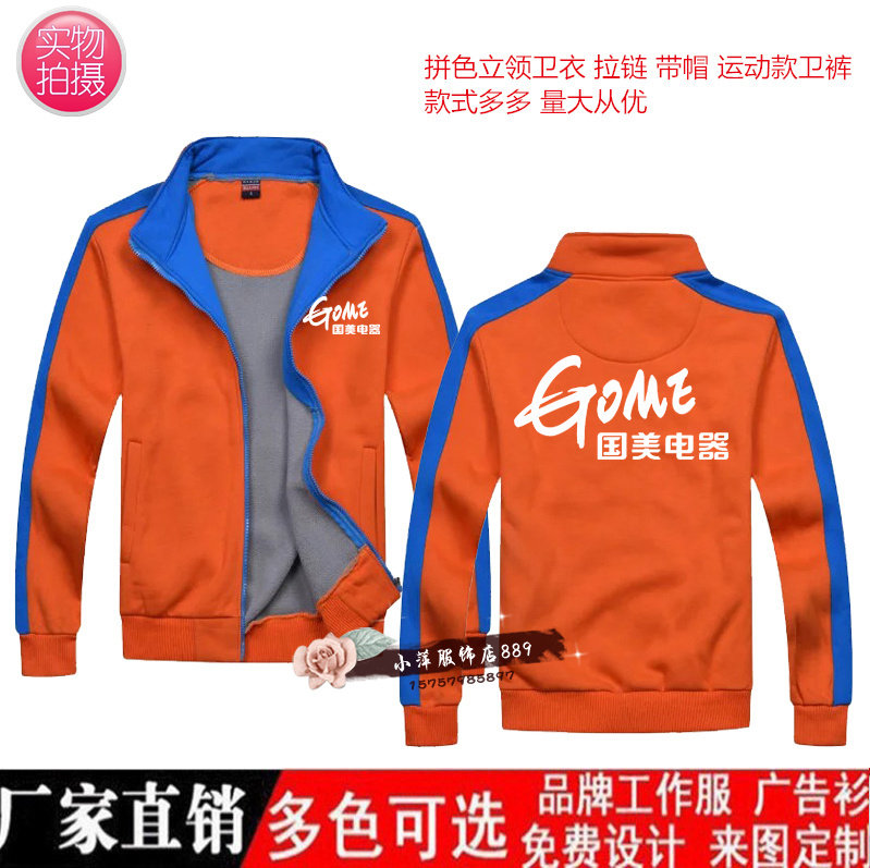 国美电器卫衣工作服定制男女款立领加绒加厚外套长袖印字logo