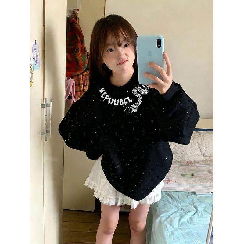 满天星亮片长袖卫衣女款秋冬季港风潮牌圆领套头韩版潮流百搭上衣