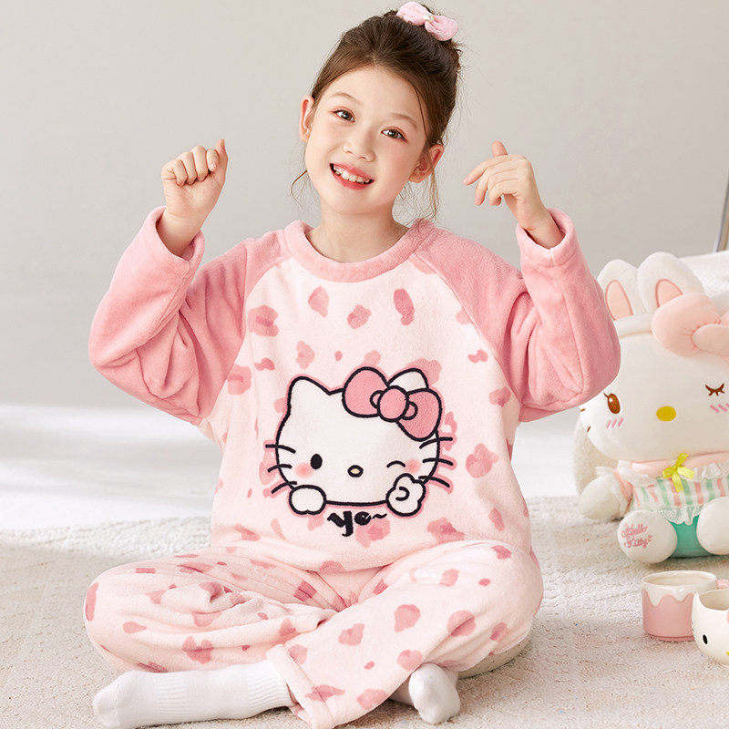 女童冬季睡衣儿童保暖冬装女孩hellokitty初中生家居服珊瑚绒套装