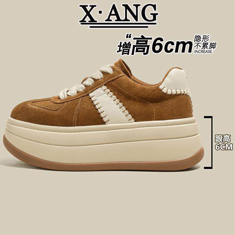6cm增高厚底小个子女鞋真皮德训鞋女款复古板鞋休闲运动鞋松糕鞋