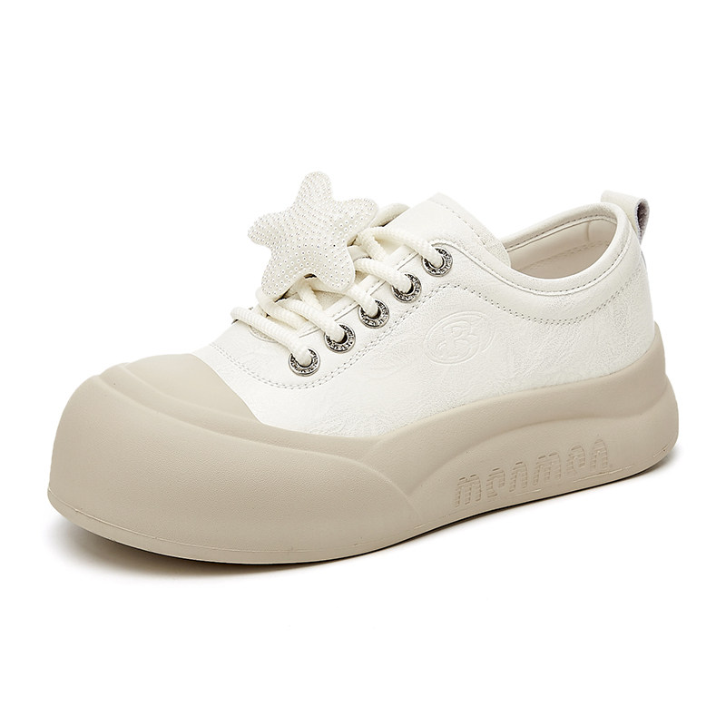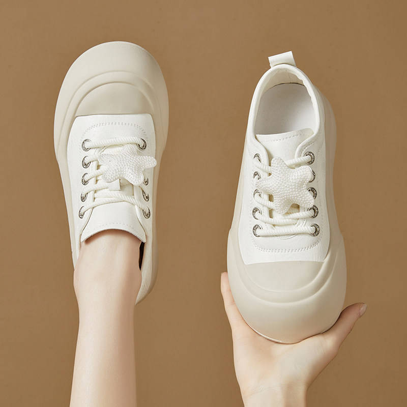 娃娃头星星板鞋女款春季新款爆款厚底增高6CM显脚小可爱面包鞋女