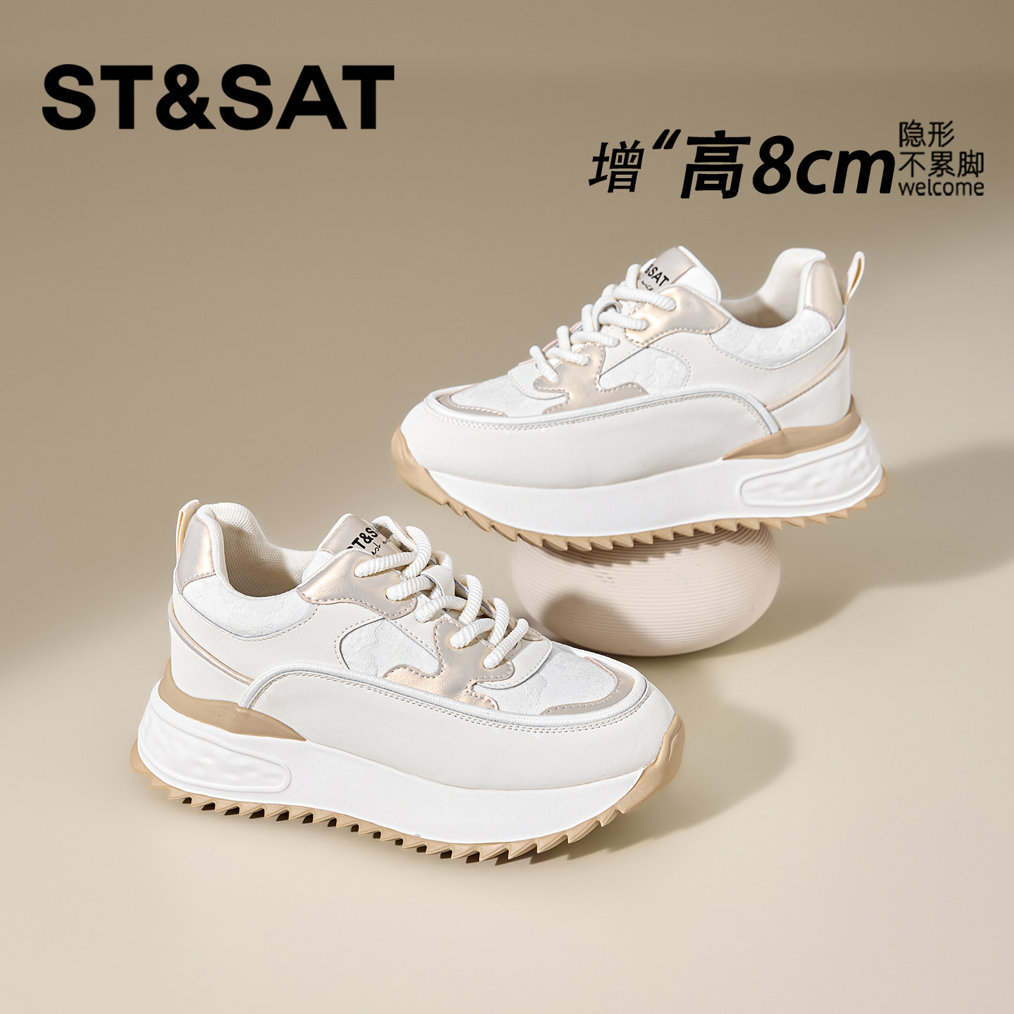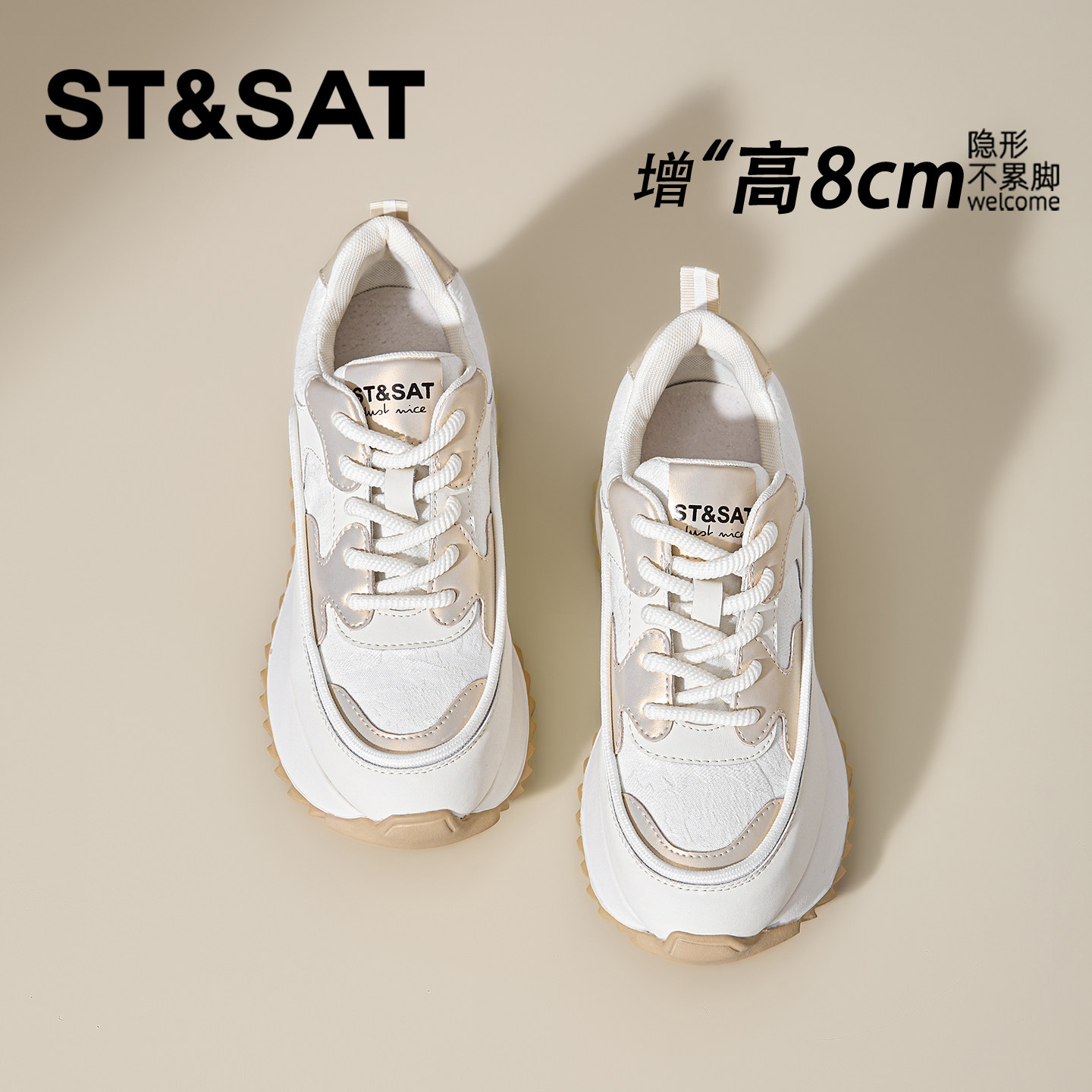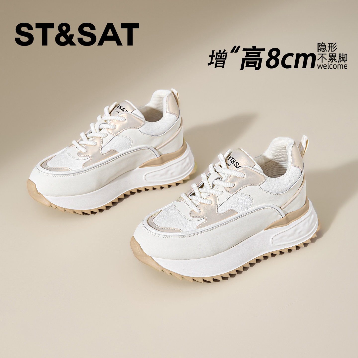 星期六8CM内增高板鞋女款小个子厚底小白鞋轻便阿甘休闲百搭德训