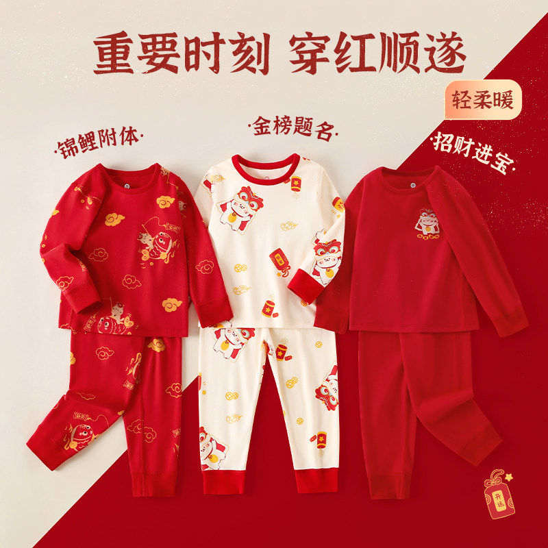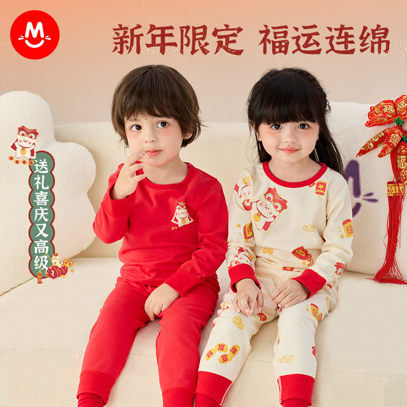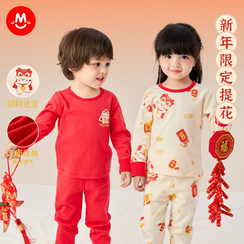 宝宝秋衣秋裤儿童全棉内衣套装男过年12岁女童新年红色秋冬本命年