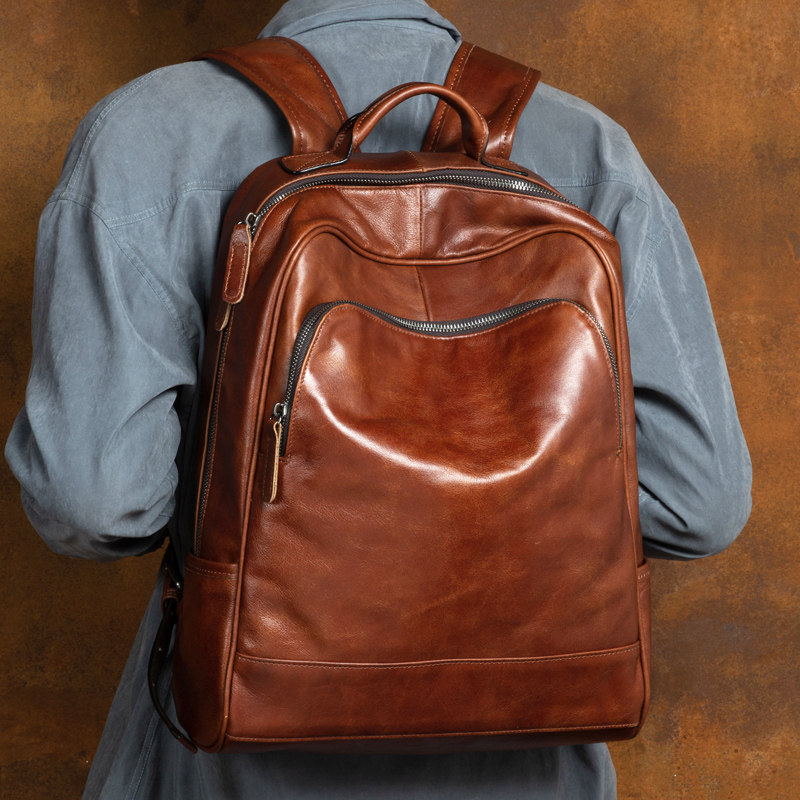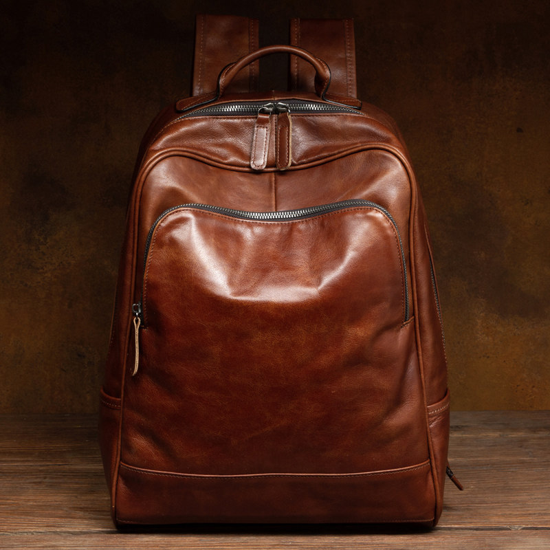 新款时尚潮流真皮背包男女款休闲头层牛皮双肩包通勤电脑包旅行包