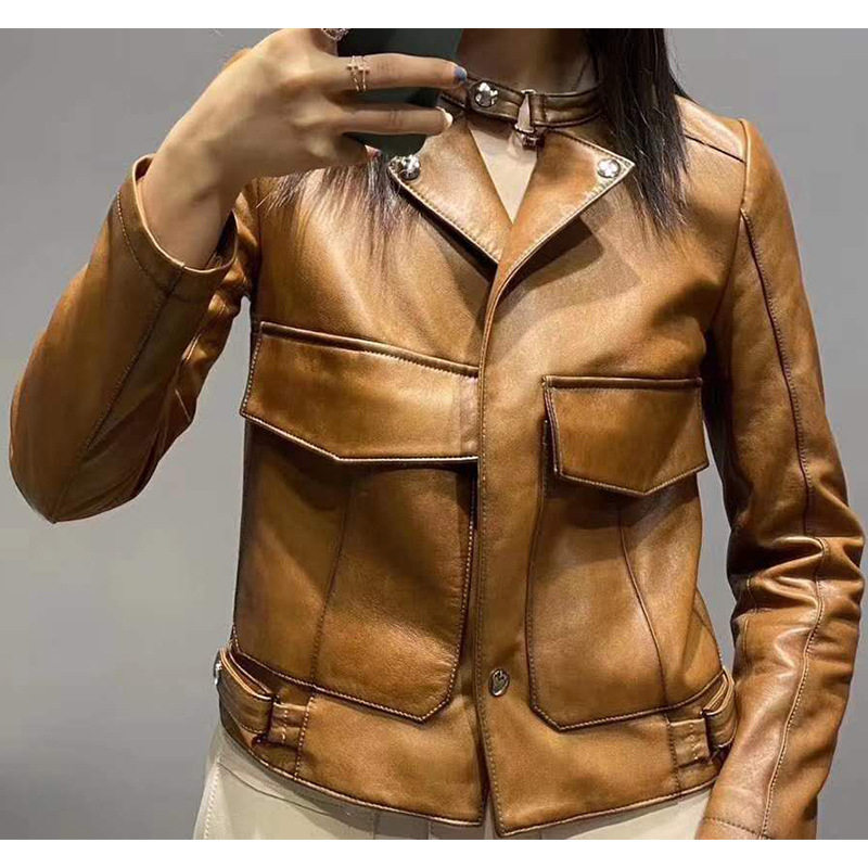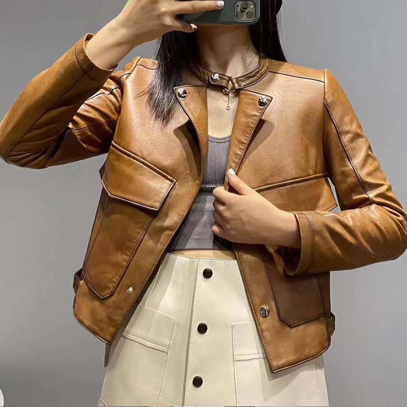 今年流行特惠海宁2026春装真皮皮衣女修身绵羊皮机车服单皮薄款小