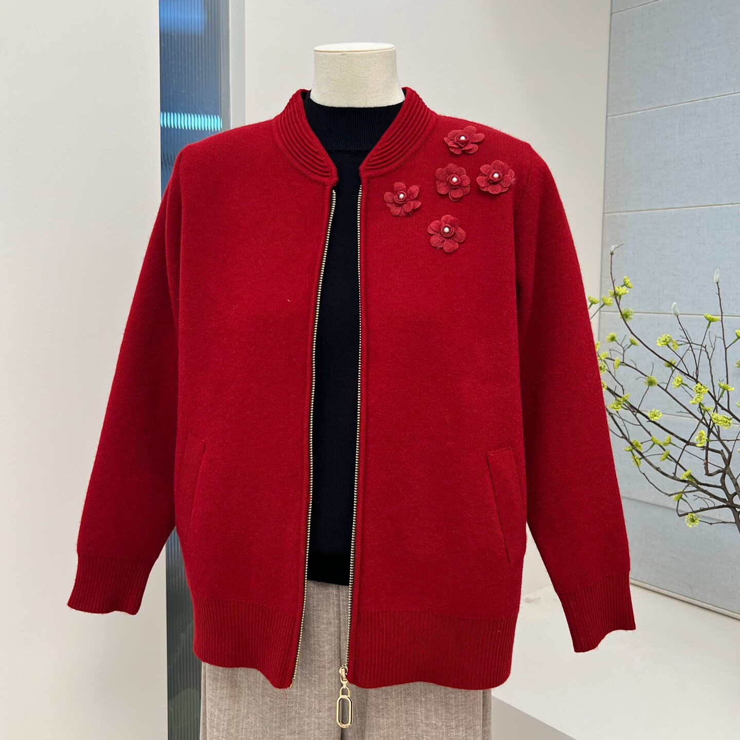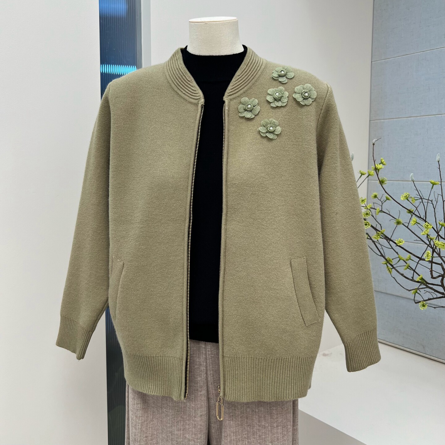 2025冬季新款气质妈妈装针织加绒外套旗袍领纯色中老年保暖毛衣女