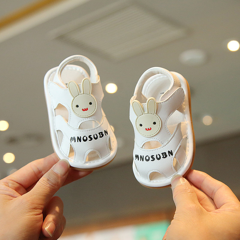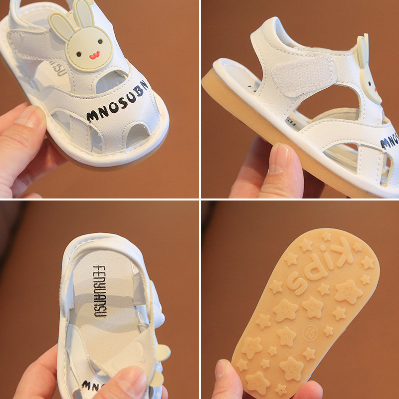 夏季女宝宝叫叫鞋小童学步鞋包头女童凉鞋男童1到3岁软底婴儿鞋子