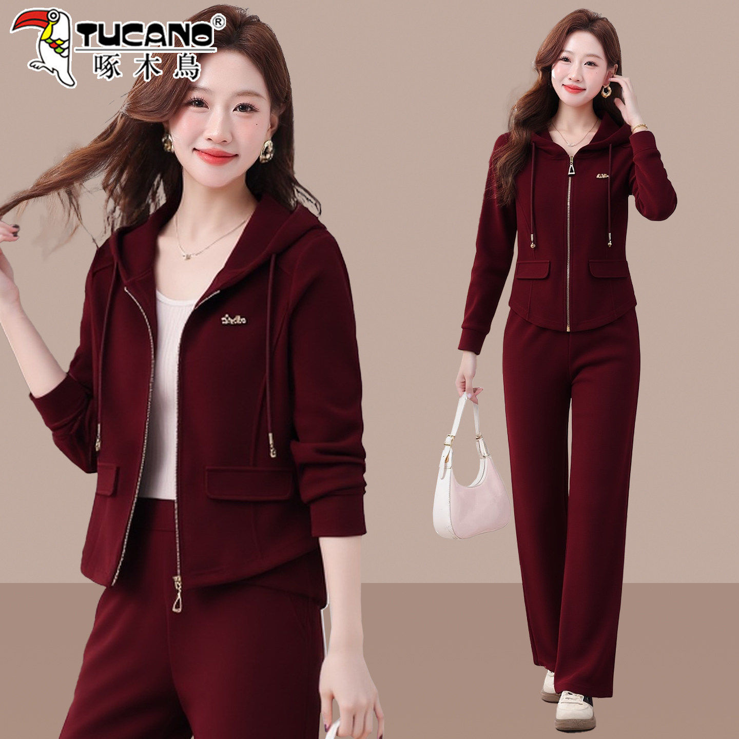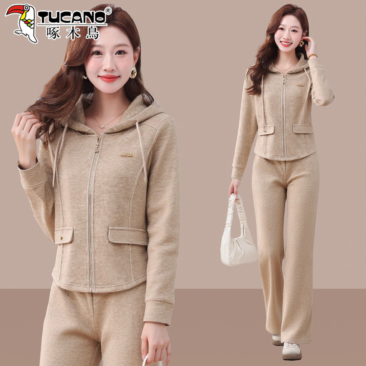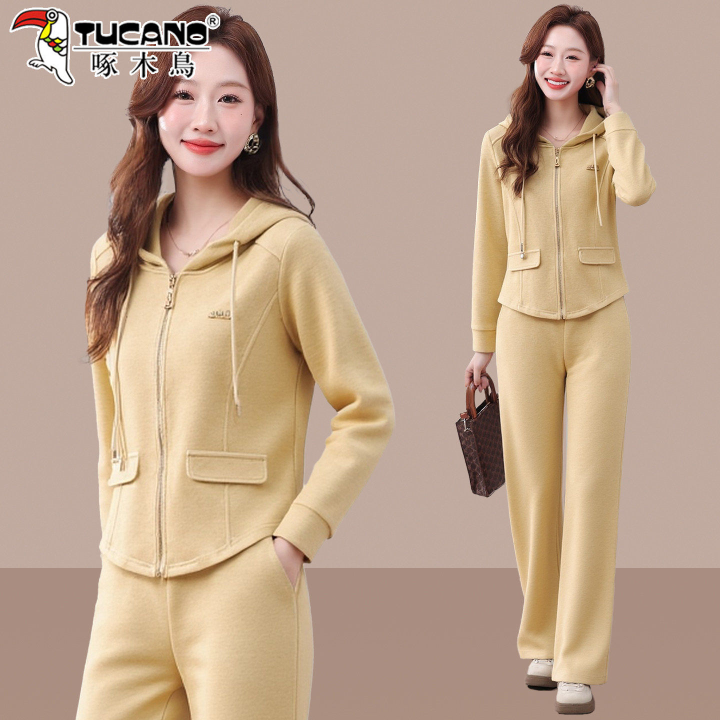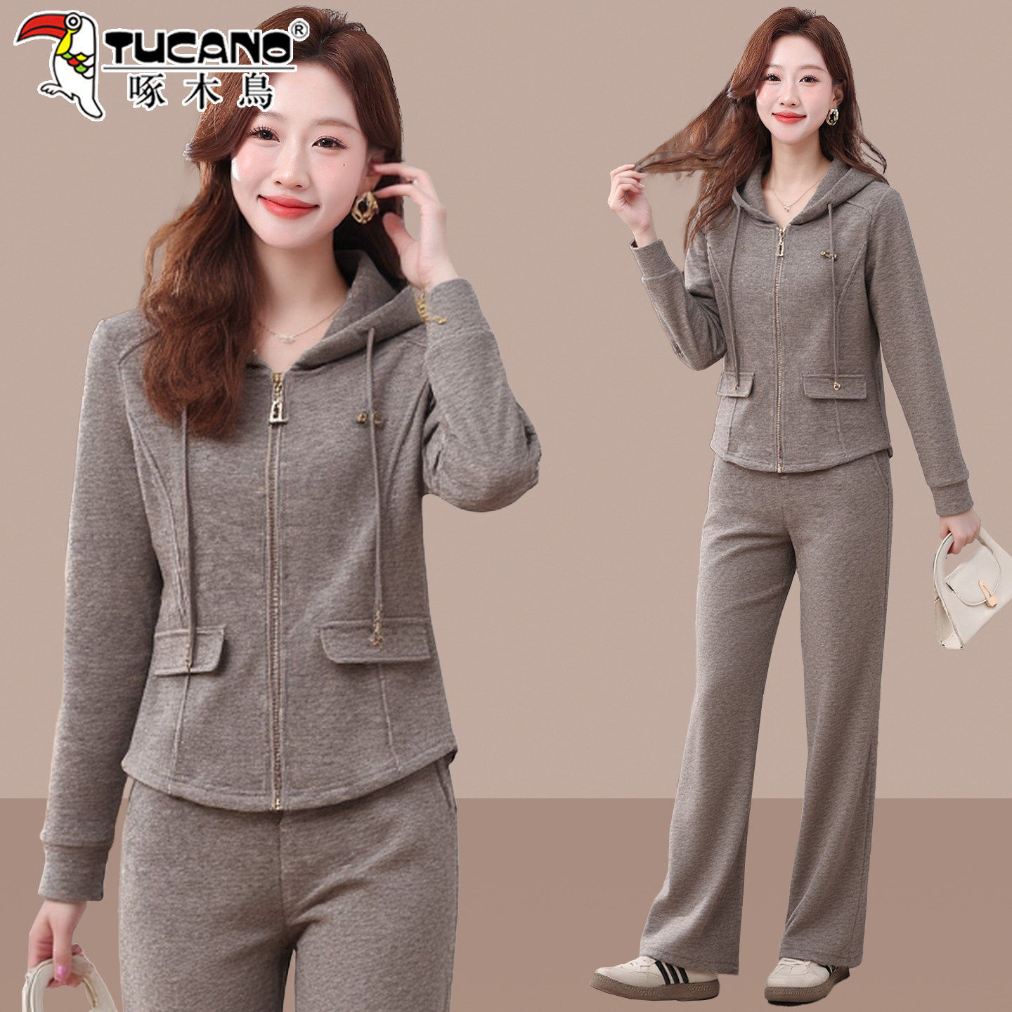 啄木鸟早春休闲套装女2026新款春秋洋气减龄妈妈连帽卫衣两件套