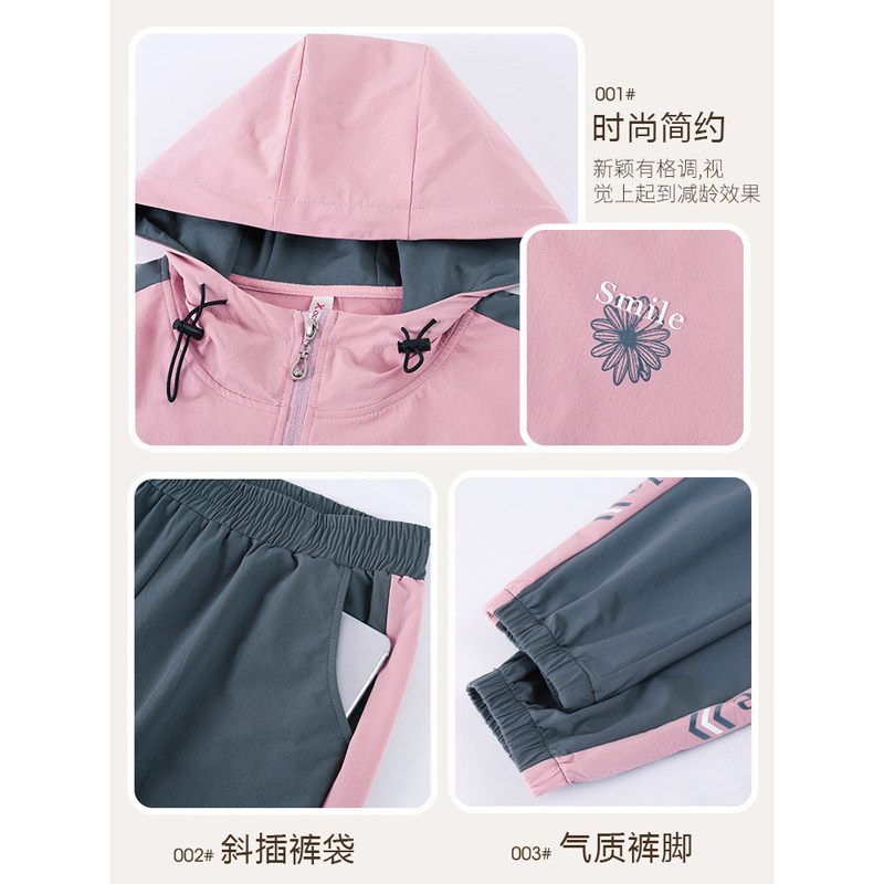 运动套装女2026新款早春穿搭时尚印花跑步服大码气质减龄连帽整套
