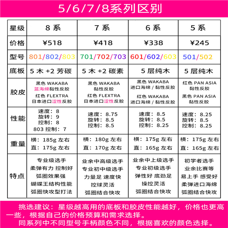蝴蝶乒乓球拍8星芳碳素底板蝴蝶王胶皮八星单拍直/横拍成拍