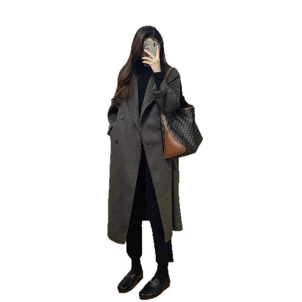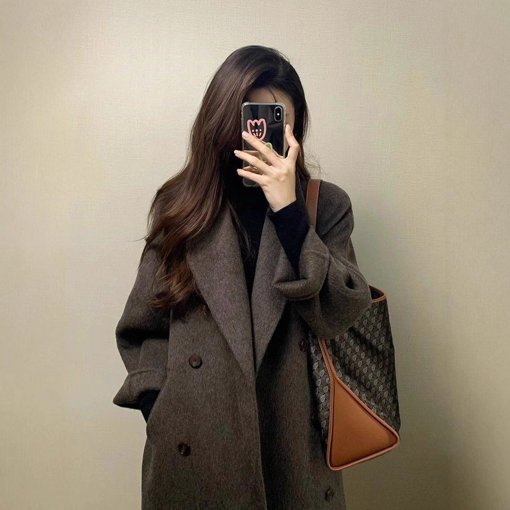 大衣女秋冬季2025新款加厚外套呢子小个子中长款赫本风