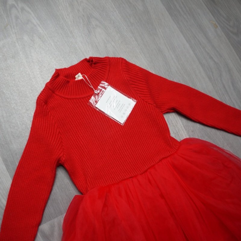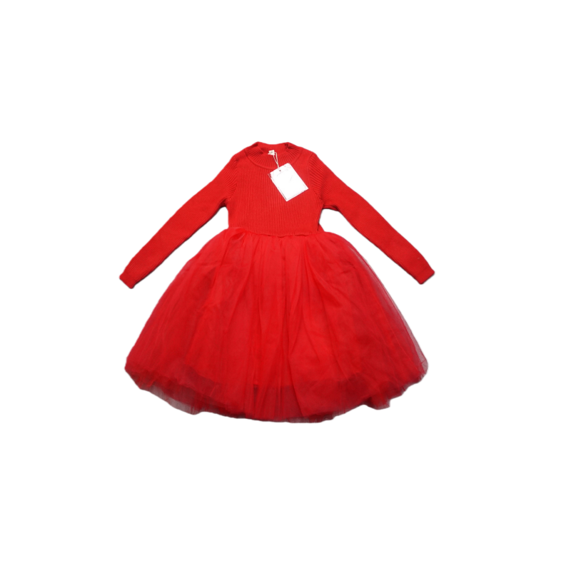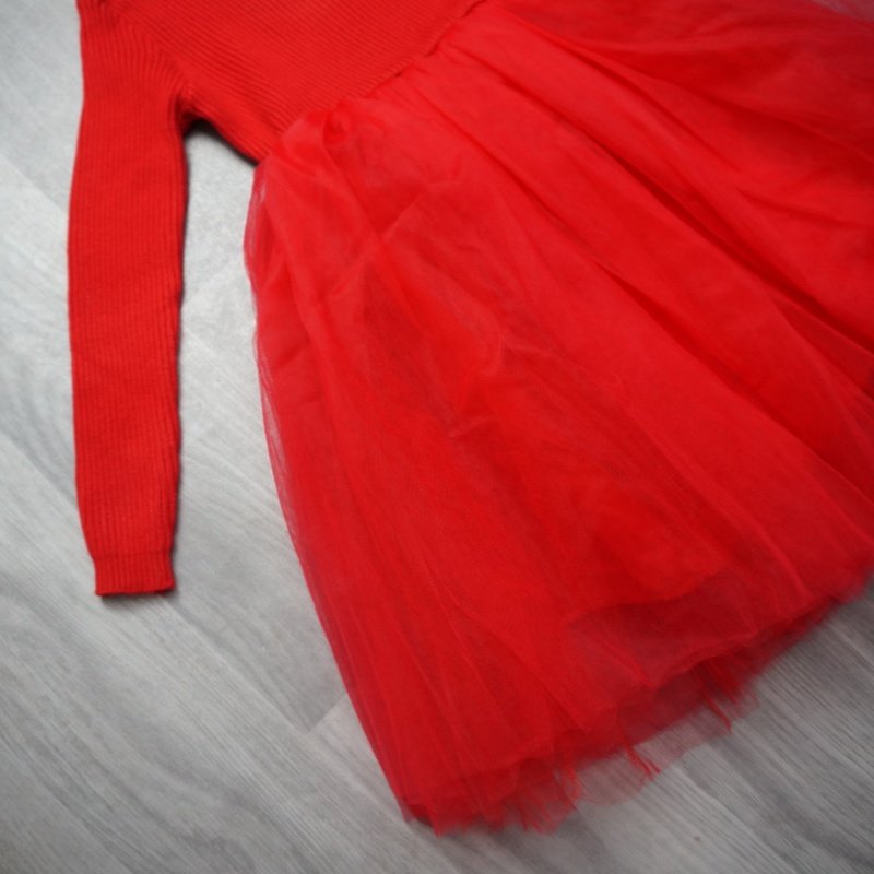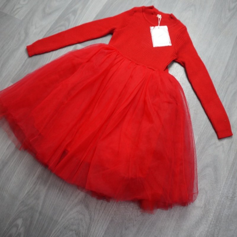 秋冬新款红色长袖连衣裙女童网纱蓬蓬裙甜美公主梦幻裙松弛感裙子