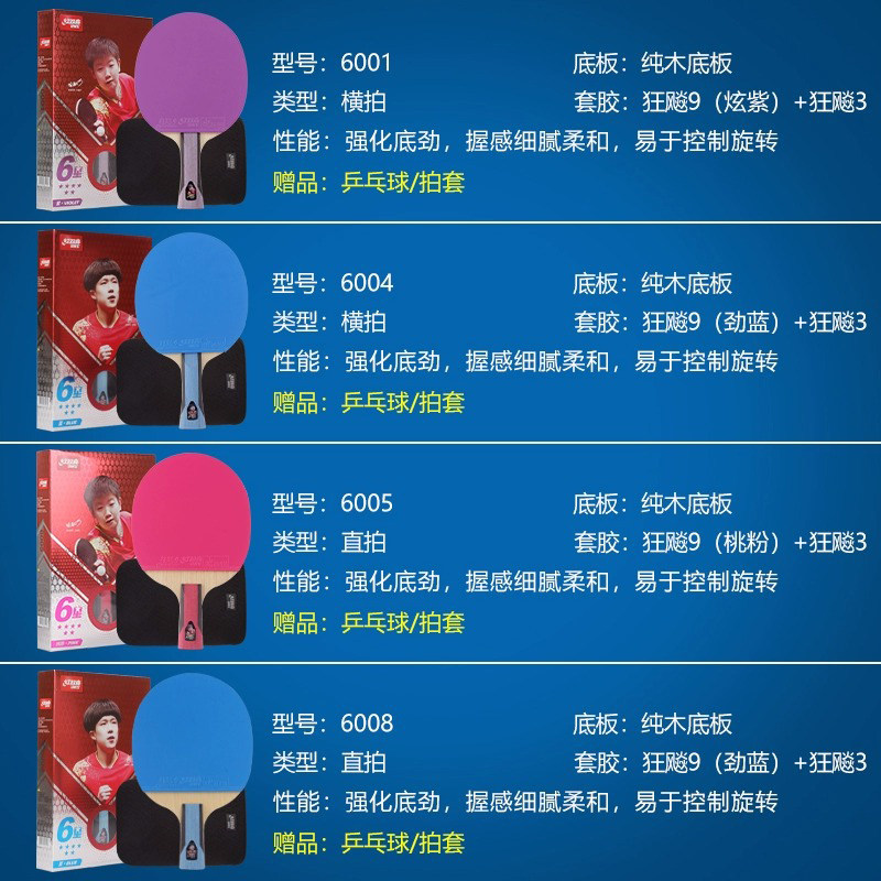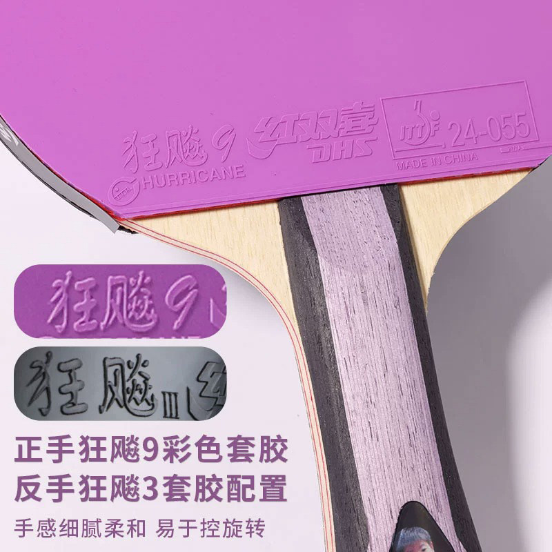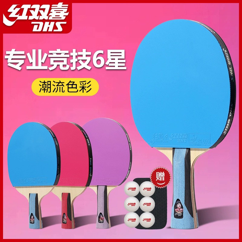 红双喜乒乓球拍专业级六星级彩色胶皮狂飙9正品横直纯木乒乓拍