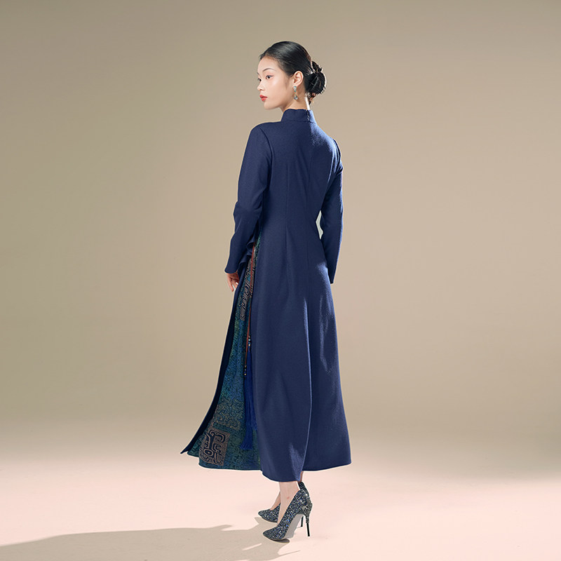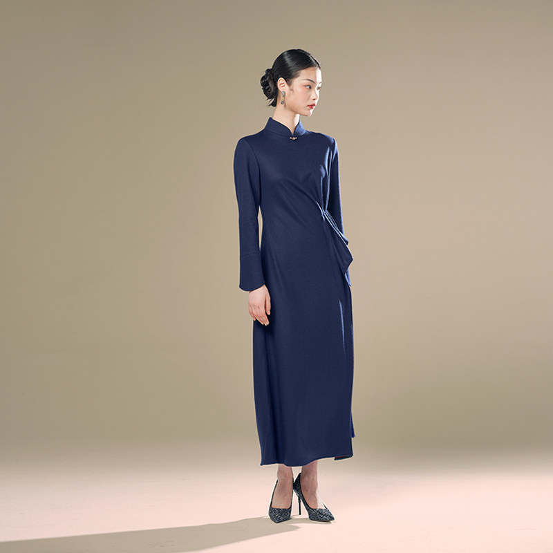吉祥衣家新中式绵羊毛高定女装长裙长袖连衣裙春秋款943237314
