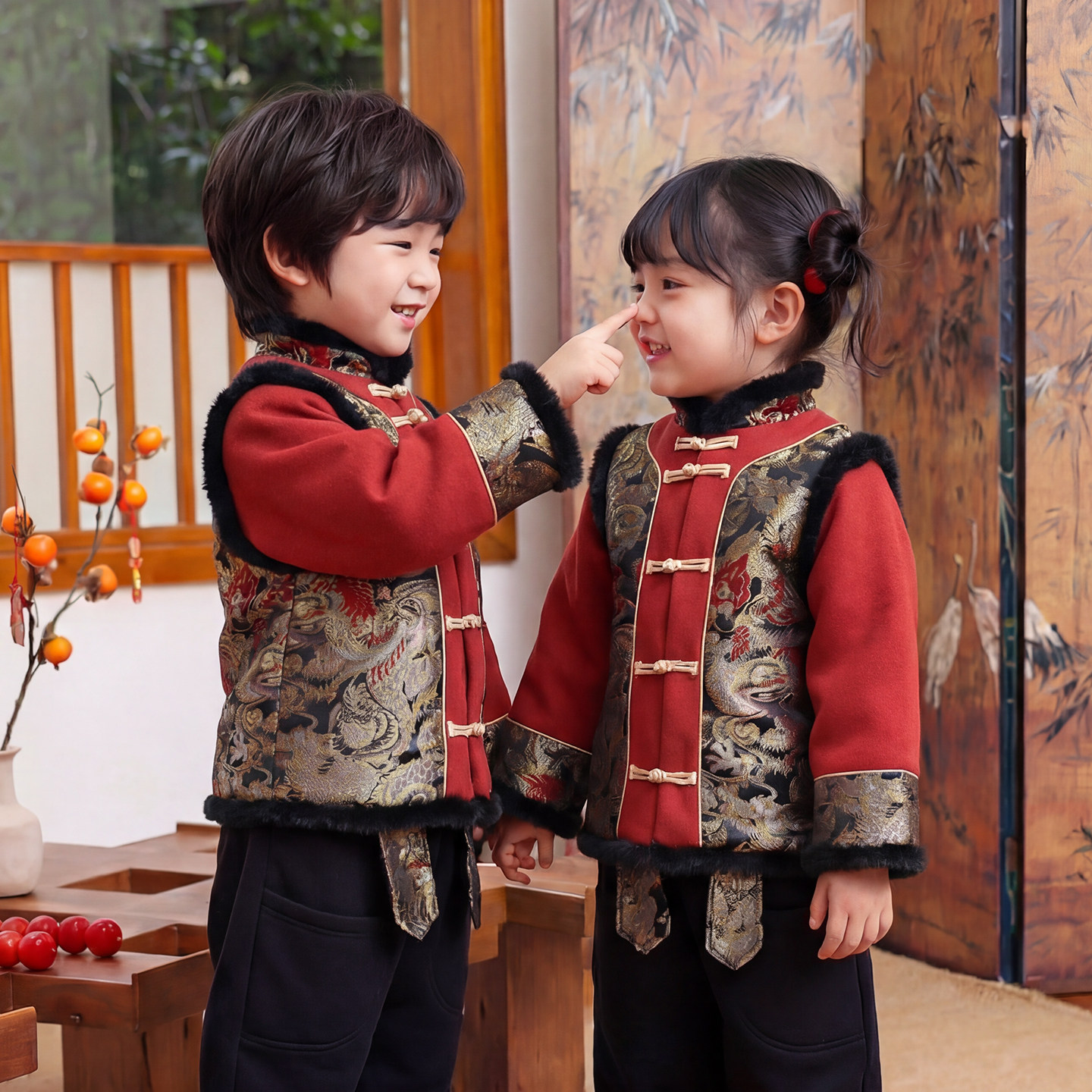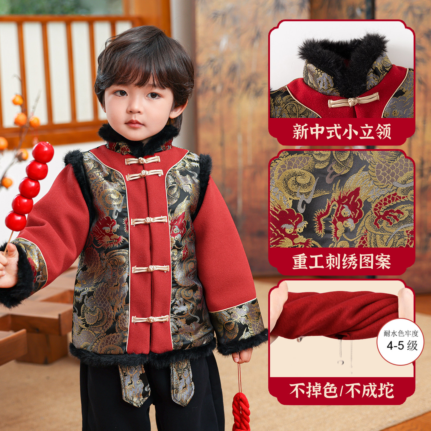 儿童拜冬年服喜庆风新中式国风唐装套装2026新款男童女童过年服冬