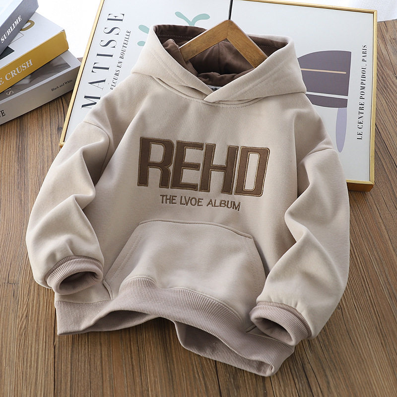 儿童加绒连帽卫衣秋冬2025新款男孩加厚保暖上衣中大童洋气长袖潮