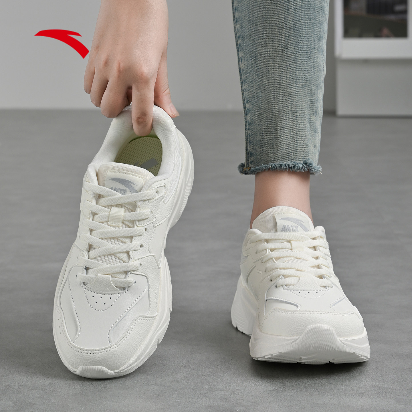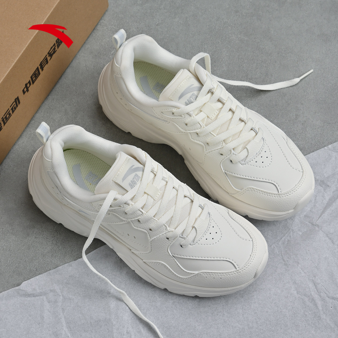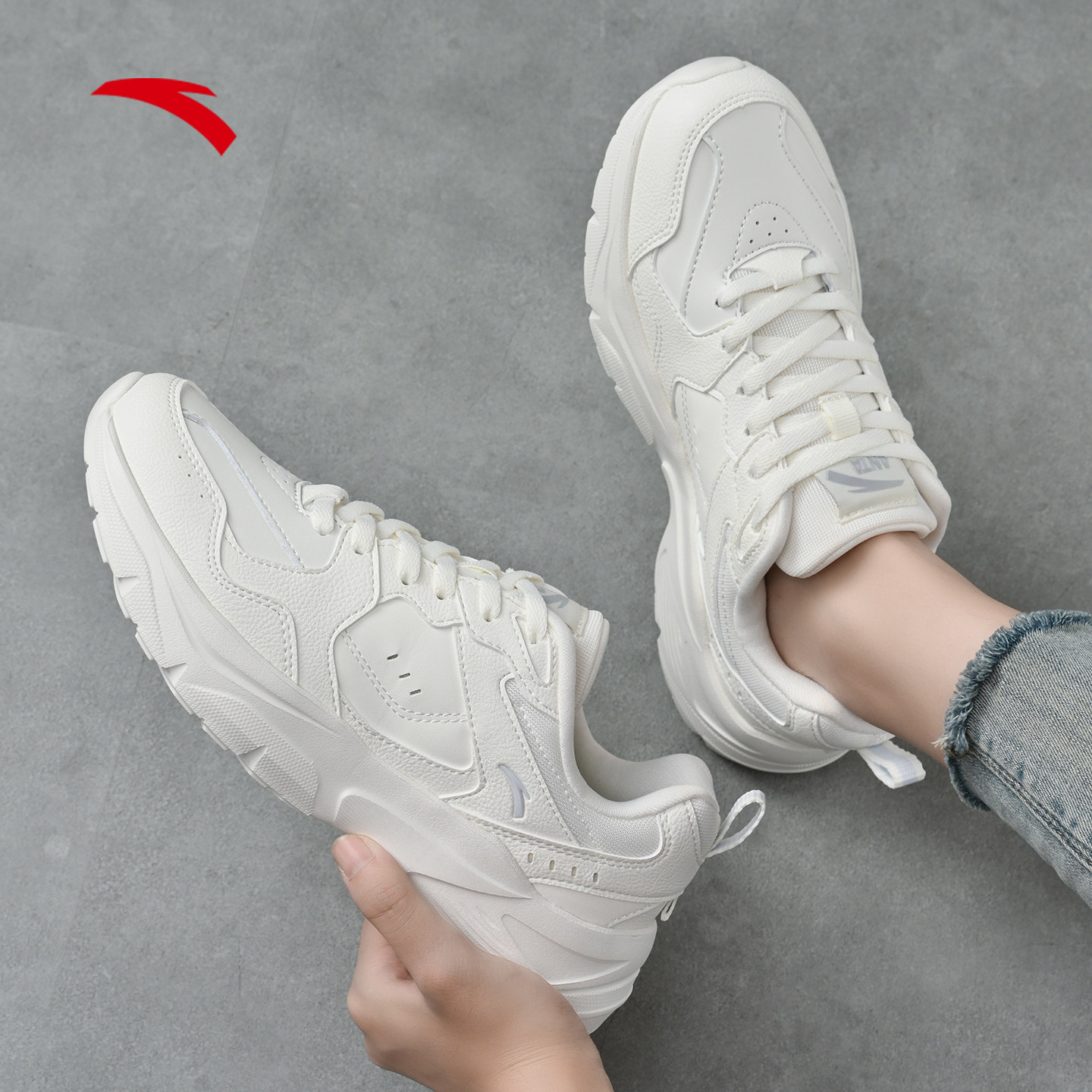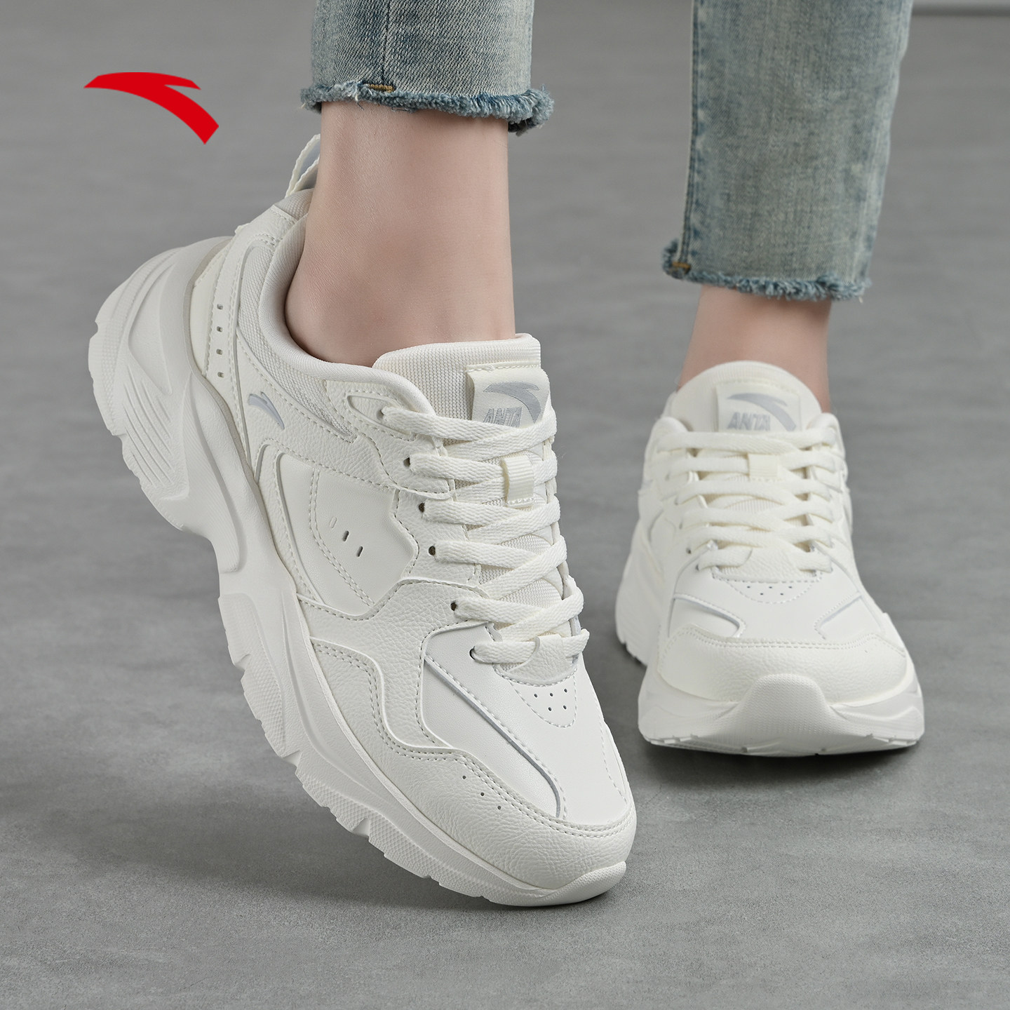 安踏女鞋老爹鞋皮面防水运动鞋女款鞋子小白鞋新款冬季白色休闲鞋
