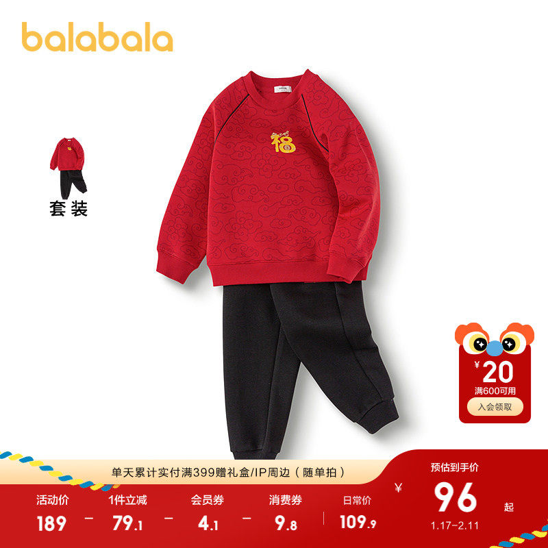 巴拉巴拉童装儿童套装男童春装国风两件套新年印花拜年服时尚休闲
